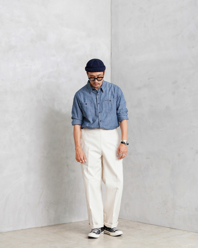 ワンウォッシュすると生地が大分馴染み、経年変化が進むと共に愛着の出る一品かなと期待してます。 ベタですが、セントジェームスと合わせるのもまたアリかなと… 真夏以外のシーズンなら全て対応出来そうなので、お勧めできるアイテムです。 |