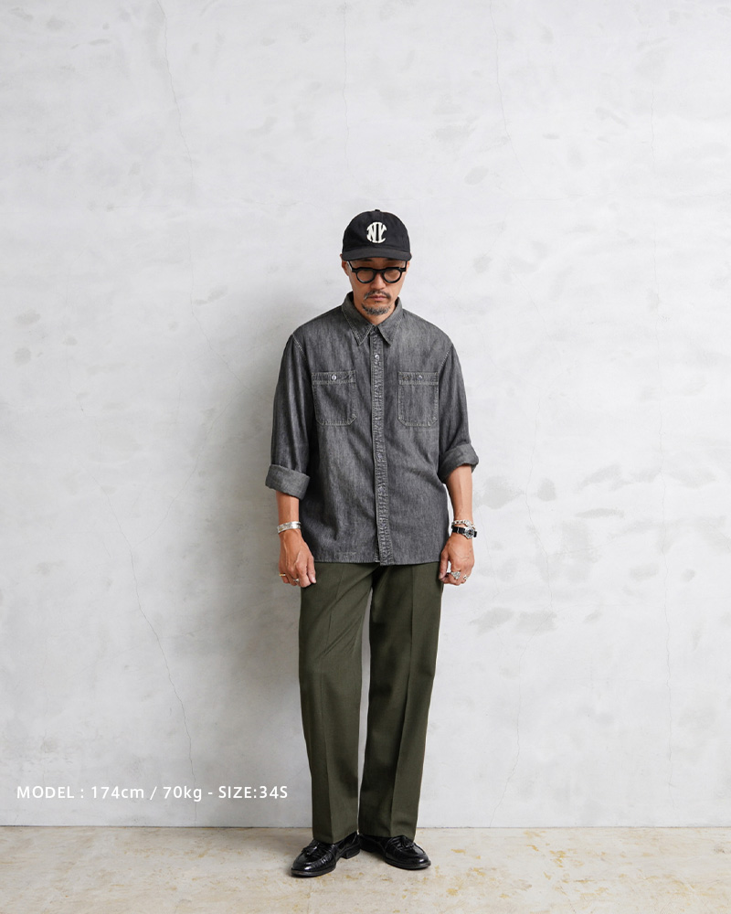 ゆったりと穿けるストレートシルエットで、スラックスとしては標準的な太さです動きやすく、絶妙なシルエットに仕上がっている非常に雰囲気のある1本です。