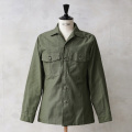 | 商品説明 | 実物 新品 デッドストック 米軍 OG-107 コットンサテン ユーティリティシャツ シャツ袖のご紹介です。 制式名称:SHIRT,UTILITY,COTTON SATEEN,OG-107 米軍のアイテムを語る上で外せないOG-107 コットンサテン ユーティリティシャツが入荷しました!米軍放出品の中でも抜群の人気を誇り、年々希少価値が上がると共に相場の高騰と放出数の激減でUSEDさえも発見されることが少なくなったアイテムです。そんなユーティリティシャツが今回は未使用デッドストックでの入荷! 「M-47 HBT ユーティリティシャツ」で使用されていたHBT(ヘリンボーンツイル)が、1950年代半ばからコットンサテンを使用した「OG-107 コットンサテン ユーティリティシャツ」が誕生し、コットン50%、ポリエステル50%素材の「OG-507 ユーティリティシャツ」が採用される1978年の前年まで製造されていました。複数のタイプが存在しますが、こちらは1965年以降にシャツ袖に変更されたモデルです。 「OG-107」とは、オリーブグリーン(Olive Green)の頭文字と米軍のカラーコード「107」が由来になっており、その後「OG-507」から1980年代を通じてBDUへと移行していくまで使用されていました。陸、海、空軍、海兵隊などの全軍で採用された汎用性の高いデザインで、オープンカラーシャツは首元に窮屈感を感じることがなく、1番上のボタンを閉じることもできる仕様です。裾は水平にカットされたスクエアボトムが採用されていますのでボタンをフルオープンで着ていただくのに適したデザイン。 胸ポケットはボタン留めのフラップが備わっており、左胸にはペンホルダー付きです。米軍のアイテムでよく見られるファティーグボタンが使用されており、ファティーグシャツという名称でも親しまれています。 8.5オンスのコットンサテン生地は独特な凹凸感があり、着込むほどに風合いの良い経年変化も楽しめる素材です。ジョンレノンが着用していたことでも有名なOG-107は米軍のみならず、ベトナム戦争の反戦運動など1960年代のカウンターカルチャーを象徴するアイテムとしても知られています。 アメリカのみならず世界中を探して本当に久しぶりに見つけることができました。実物のアイテムは今後なかなか手にすることはできない希少な極上品です。 |
