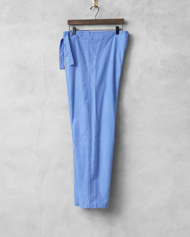 | 商品説明 | 実物 新品 デッドストック 米軍 ヴィンテージ HOSPITAL フランネルパンツのご紹介です。 制式名称:TROUSERS,MEN’S,PAJAMA COTTON FLANNEL 1960年代を中心とした年代の古い、米軍のコットンフランネルを使用したパンツが入荷しました。 米軍の医療機関などでホスピタルパンツとして使用されていたアイテムで、主に戦闘外の後方エリアで使用されていたようです。負傷して回復中の戦闘要員にも適切に治癒しながら快適に過ごせるようにゆったりとした作りになっています。フロントはウエスト部分にスナップボタンが1つ付属していますが、前開きはステッチで区切られていますので気になりません。ウエストのコードで絞って穿いていただくデザインです。 肌ざわりの良いコットンフランネル100%素材で、表地と裏地ともに起毛加工が施されていますので着用感が素晴らしく保温性にも優れています。パジャマとしての使用にはもちろん最適ですが、イージーパンツのようにラフに穿いていただくのもおすすめしたいパンツです。 スリーピングパンツは根強い人気アイテムで、こちらのライトブルーのカラーも使い勝手の良い色目で着こなしの幅が広がります。米軍のヴィンテージアイテムが希少なデッドストックでの入荷です! |