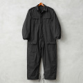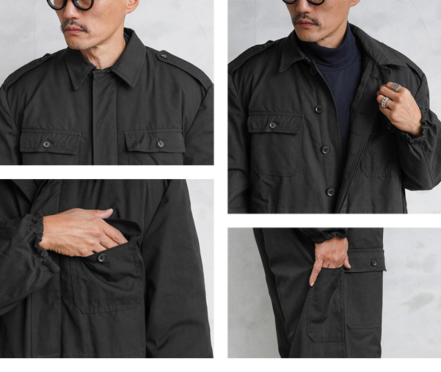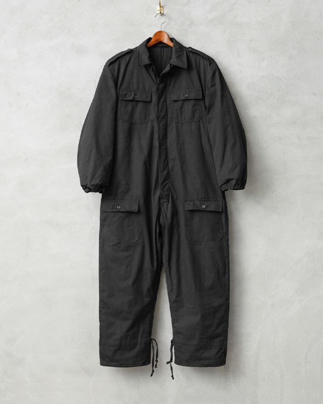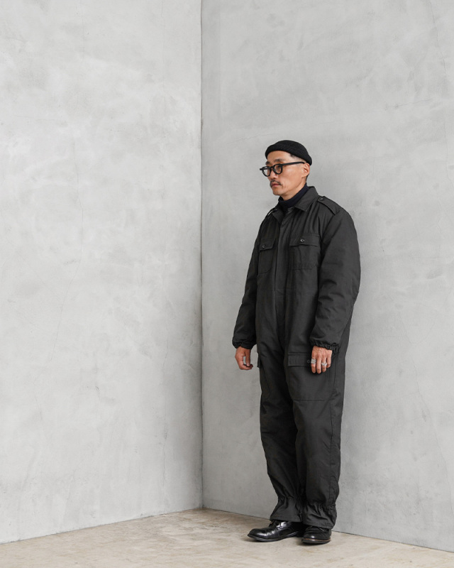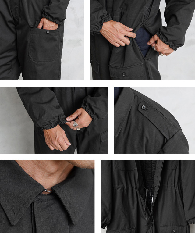 | 商品説明 | 実物 新品 デッドストック ルーマニア軍 WINTER タンカース カバーオールのご紹介です。 ルーマニア軍から秋冬に重宝するカバーオールが入荷しました。 コットン製のシェルとキルティングのライニングには全体に中綿が入った保温性の高いデザインです。コットン製ですが僅かに撥水性も確認できています。首元にはホック付き、フロントはボタンタイプの比翼仕立てで、ボタンが表に出ない仕様で安全性に配慮されています。 ボタン開閉の胸ポケットと太ももの位置にもフラップポケットが2箇所づつ付属しています。ウエスト部分のサイドポケットは貫通ポケットになっており、オーバーパンツのように内側にアクセスできる便利な仕様になっています。右サイドには縦長のツールポケットも付属しています。 袖口はゴムシャーリングで伸縮し、ウエストの内側と足首部分にはドローコードで調節できる仕様ですので、フィット感を高めることにより優れた防寒性を発揮します。 オールブラックが使いやすいカラーで、タンカースカバーオールとして使用されていたことが推測されるアイテムですので、バイクやアウトドアなど寒さの厳しい場所での使用に最適なカバーオールです。 |