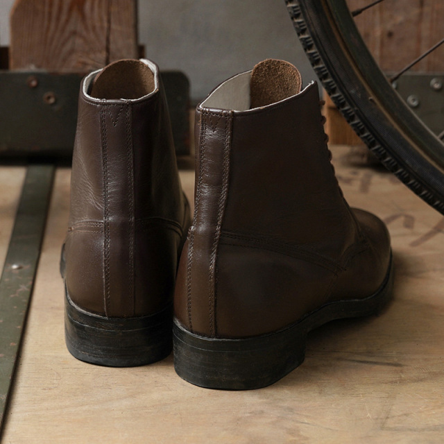 | 商品説明 | 実物 USED ルーマニア軍 レザー オフィサーブーツ ブラウンのご紹介です。 ルーマニア軍で2000年代に製造されたレザーオフィサーブーツが入荷しました。 汎用性の高い外羽根式のプレーントゥで、履きやすくコーディネートしやすい7ホールのアンクル丈のトラディショナルで綺麗なフォルム、アッパーは本革仕上げで、ライニングやインソールにもレザーを使用していますので履くほどに足に馴染みます。ソールには耐久性と快適性を与えるDUCATEXが使用されています。 プレーントゥはドレスパンツなどとの相性が良いのはもちろん、デニムやミリタリーパンツにもスタイルを選ばず使えるので、あらゆるタイプのボトムスに気軽に合わせることができます。 様々なスタイリングに合うシンプルで、普遍的なデザインが魅力のレースアップブーツです。ルーマニア軍で採用されている本物のミリタリーブーツを手にする機会は少なく、希少価値も高いアイテムです。 革靴や皮革製品において本国で最も古いとされるメーカーが作るルーマニア製のレザーブーツです。 |