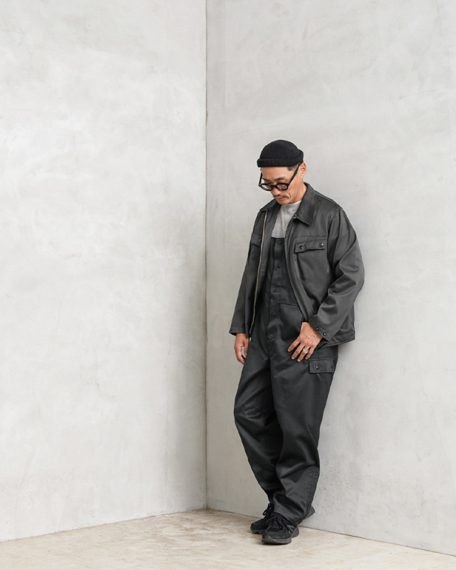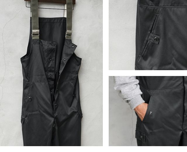 | 商品説明 | 実物 新品 デッドストック 東ドイツ軍 NVA ブラック タンカース オーバーオールのご紹介です。 東ドイツ軍(NVA)で採用されていたタンカースオーバーオールが入荷しました。 「NVA」は、Nationale Volks Armee(国家人民軍)の略称で、東ドイツ軍を指しています。東西ドイツ統一後の1990年にはドイツ連邦軍に統合された軍隊です。そんな東ドイツ軍のアイテムとなれば30年以上は経過していることになりますので、それだけでも希少価値の高さがうかがえます。 張りのあるコットンとポリエステルの混紡素材を使用したサテン生地で、コットンポリは軽量でシワになりにくく、丈夫で通気性と速乾性を兼ね備えた素材が使用されています。 フロントはスナップボタンで開閉するデザインで、2箇所のボタン留めのスラッシュポケットと、スナップボタンで開閉するフラップ付きのシンプルなカーゴポケットが2箇所配置されており、右のカーゴポケット内部にはコード付きのフックが付属していますので鍵などを取り付けて落下防止に役立ちます。ExtraStarkというブランドの伸縮性に優れたサスペンダーが使用されており、調節も可能な仕様になっています。 ウエストから裾にかけてテーパードしたシルエットが野暮ったさを感じさせず、裾には金属製のファスナーが付いていますので、こちらを開けるとマチ付きでシルエットに変化を出して着用いただける実用的なデザイン。 東西冷戦下に旧ソ連の影響を受けたブラックカラーが印象的で時代を感じる1枚です。なかなかミリタリーアイテムでブラックは少ないのでコーディネートにも取り入れやすいカラーというのも嬉しいポイントです。 オーバーオールというアイテム自体が放出されることが稀で、独特で無機質な雰囲気があります。性別問わず着ていただけますし、アウトドアなどでも活躍するデザインでコーディネイトしやすく本当に重宝します。 放出自体ほとんどなく、少量のみ入荷しています。今後出てくることは難しいレアアイテムです。 |