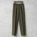 | 商品説明 | 実物 新品 カナダ軍 BATTLE DRESS(バトルドレス)ウール トラウザーズ CADET MODELのご紹介です。 カナダ軍より放出された1950年代を中心に使用されていたヴィンテージトラウザーズが未使用デッドストックで入荷しました!肉厚なウール素材が使用された上質なトラウザーズで、カナダ軍の士官候補生が使用していた歴史を感じさせる1本です。 BATTLE DRESS(バトルドレス)は第2次世界大戦の開戦直前にイギリス陸軍に導入され、1960年代まで着用されていました。イギリス軍より得られたデザインから様々な国でも採用され、各国独自のバリエーションのバトルドレスが導入されていました。 フロントはボタンフライ仕様で、サスペンダーボタンなど全体にドーナツ型のメタルボタンが使用された贅沢な仕様です。ウエストにはサスペンダーボタンが付属していますのでサスペンダーで吊り下げてトラディショナルなスタイルをお楽しみいただけます。 肉厚で紡毛された綾織りのウール素材が使用されており、両サイドのスラッシュポケット、バックポケットはボタン留めのフラップポケットが2箇所付属しています。適度にワイドで綺麗なストレートシルエットで、裾のストラップとボタンで裾のシルエットを調節することもできる仕様になっています。 多少ブラウンが混ざったようなオリーブが年代物の雰囲気を感じさせる品の良い色目で、ウール素材のパンツは保温性に優れており、抗菌・防臭効果もある素材です。センタークリースを備えることで縦にまっすぐ伸びたラインが強調され、上品さが際立ちます。 半世紀以上も前の年代で、しかも放出の少ないカナダ軍のアイテム!ヴィンテージトラウザーと呼べる希少で洗練された名作ウールトラウザーズです。 |