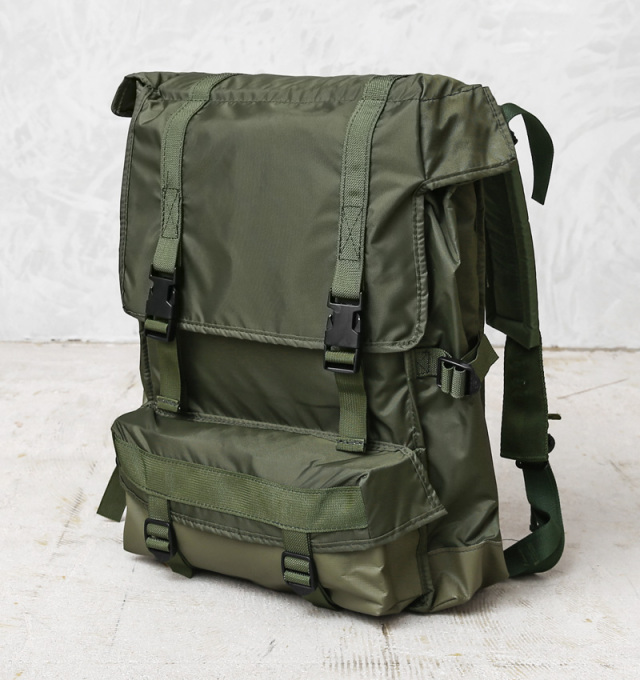 | 商品説明 | 実物 新品 デッドストック 米軍 FALCON II RANGER RADIO バックパックのご紹介です。 米軍で通信機器ケース、ラジオケースとして使用されていたバックパックが入荷しました。 ALICEパックと非常によく似た構造で、調節可能なショルダーストラップ、パッド入りのメインコンパートメント、外側下部フロントポケット、側面にフルレングスのポーチが備わっています。 メインコンパートメントはアタッチメントで簡単に開閉し、精密機械を収納していただけあって、内部には厚手のウレタン素材が内蔵されていて収納物を保護してくれる作りになっています。 フロント底部分は撥水性のあるラバー素材で、床・地面・土の上でも、迷いなく置くことができます。 クッション性のある収納部を生かして、ノートPCやタブレットなどのガジェット系も安心して持ち運びが可能。 小分け収納が可能な便利なディティールと丸みの少ないソリッドなデザインが目を惹きます。アウトドアシーンはもちろん、旅行や普段使いにも活躍する希少なサープラスアイテムです。 |