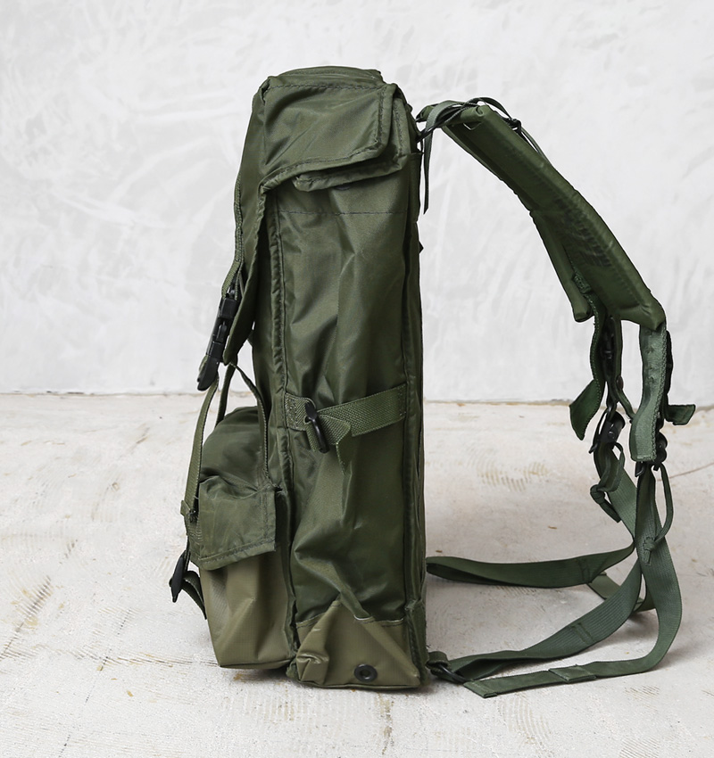 | 商品説明 | 実物 USED 米軍 FALCON II RANGER RADIO バックパック コンディションAのご紹介です。 米軍で通信機器ケース、ラジオケースとして使用されていたバックパックが入荷しました。 ALICEパックと非常によく似た構造で、調節可能なショルダーストラップ、パッド入りのメインコンパートメント、外側下部フロントポケット、側面にフルレングスのポーチが備わっています。 メインコンパートメントはアタッチメントで簡単に開閉し、精密機械を収納していただけあって、内部には厚手のウレタン素材が内蔵されていて収納物を保護してくれる作りになっています。 フロント底部分は撥水性のあるラバー素材で、床・地面・土の上でも、迷いなく置くことができます。 クッション性のある収納部を生かして、ノートPCやタブレットなどのガジェット系も安心して持ち運びが可能。 小分け収納が可能な便利なディティールと丸みの少ないソリッドなデザインが目を惹きます。アウトドアシーンはもちろん、旅行や普段使いにも活躍する希少なサープラスアイテムです。 |