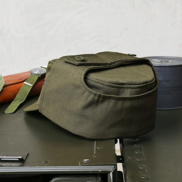 実物 新品 デッドストック チェコ軍 M85 FIELD CAP フィールドキャップのご紹介です。 チェコスロバキア軍のM60 キャップの後継として1985年から採用されていたフィールドキャップです。 耐久性のあるポリコットン生地にツバは短く被りは浅めな設計。裏地はHBT(ヘリンボーンツイル)になっています。 蒸れに対応する前面の通気孔、日差しや風から保護してくれるボタンオーバーイヤーフラップ付きで、天候や気候にとらわれず着用が可能です。 チェコが世界に誇る帽子ブランド「TONAK」製だけあって、同色のボタンや通気孔さえもアクセントになった高級感と品のある確かな作り。 シャープなフォルムが特徴的で、モードなスタイルやストリート、スポーツミックスなコーディネートに幅広く活躍します。 |