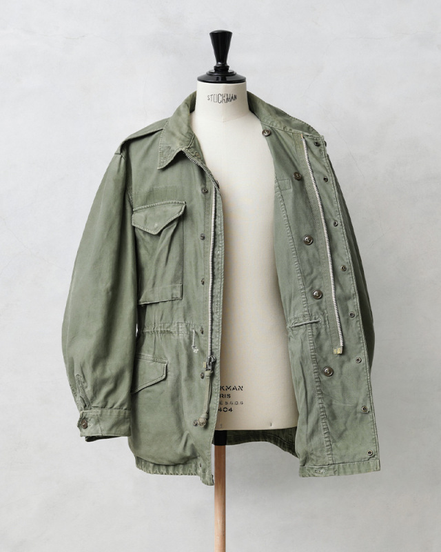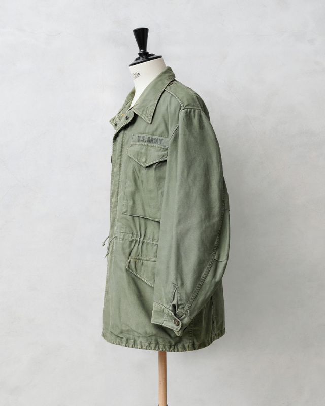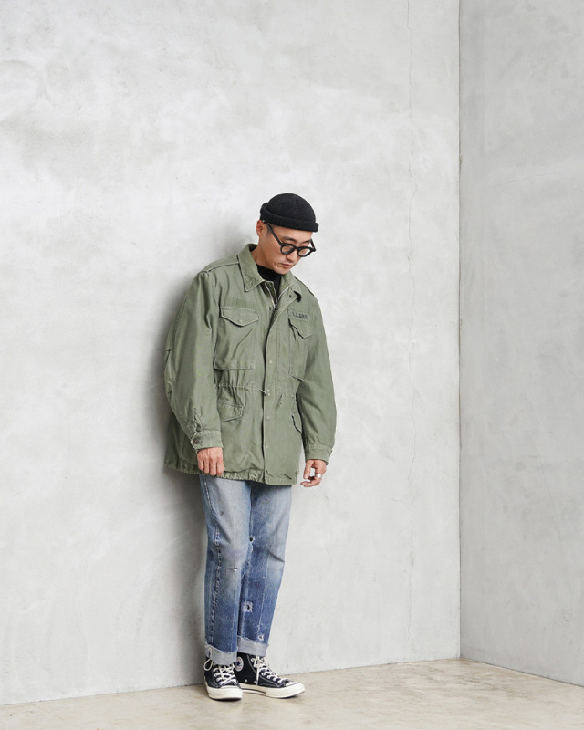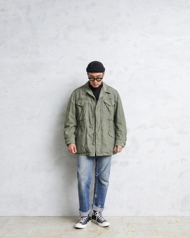 | 商品説明 | 実物 USED 米軍 M-51 フィールドジャケットのご紹介です。 制式名称:JACKET,SHELLFIELD,M-1951 比類のない機能性と汎用性で知られている「M-51フィールドジャケット」が奇跡の入荷を果たしました。 M-43、M-50フィールドジャケットの意匠を引き継ぎ、様々な気候でも使用できるように開発されたM-51フィールドジャケットは、寒冷地においてはウールパイル製の防寒用ライナーを着用することでより防寒性の高いジャケットとして使用できる点など、その後採用されたM-65フィールドジャケットにも継承されて行くデザインやディテールのフィールドジャケットです。 9オンスのコットンサテン生地を裏使いしたバックサテンを使用した裏地付きのジャケットで、朝鮮戦争とベトナム戦争の初期に兵士の野戦服の一部として使用されていました。 フロントの開閉にはスナップボタンとジッパーが採用されており、ボタンの破損や引っ掛かりによる危険などを避ける目的の比翼仕立て、収納箇所の多い胸やウエストのフラップポケット、胸ポケットにはマチ付きで立体感のあるデザインで、ポケットの開閉もスナップボタンに変更されています。フィット感を高めるウエストのドローコードは外側に備わっています。 高い汎用性と多くのフィールドジャケットにも取り入れられた機能性に優れたデザインは、現代のファッションにまで影響を与えたミリタリーを語る上で外せない象徴的なアイテムです。 世界中を探してもなかなか見つけられなくなってきた希少なアイテムですので、ご自身のコレクションの1つにぜひ加えていただきたい素晴らしいジャケットです。 |