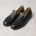 | 商品説明 | 実物 新品 デッドストック チェコ軍 CEBO社製 ラバー ローファー レインシューズのご紹介です。 統合・分離前のチェコスロバキア時代の1939年より続く、100年以上の歴史をもつクラシックシューズブランド「CEBO」製で、撥水性のあるラバー素材を使用したスリッポンシューズです。 CEBO (セボ)はCEBO=旧チェコスロバキア (CZECH SLOVAKIA)+靴 (BOTA ※チェコ語)の略称で、長い間、国営企業として、フランス空軍、ベルギー陸軍などの軍用のスニーカーやブーツ、ゴム製品を中心に製造していました。1993年以降、ブランドの消滅、復活を経てチェコ・スロバキアの歴史とともに今も機能性、ファッション性を兼ね揃えたシューズを造り続けています。 シューズとゴム製品を製造してきた技術が活かされたゴム製のローファーは、本革エナメルのような光沢があり、無駄な装飾は無いもののアッパー部分の細かなヘアラインストライプがアクセントになった上品な仕上がり。 また、足元をキレイに引き締めて見せてくれる細身のワイズですが、ラバー素材特有の伸びの良さがありサイズ前後の誤差ならフィット感を感じることができます。 縫い目が無く、革とは違って雨に強い素材のため、レインシューズとしても履くことができます。 軽量でお手入れ簡単なので、雨天両用で履けるデイリーに活躍するアイテムです。 MADE IN CZECHOSLOVAKIA |