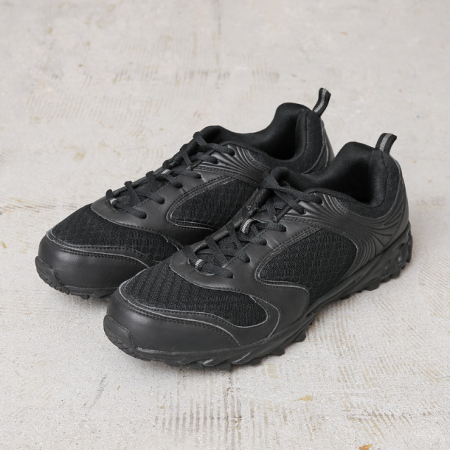 | 商品説明 | 実物 USED ドイツ軍 トレーニングシューズ #1のご紹介です。 ミリタリーシューズの中でも名作と言われるジャーマントレーナー。ホワイトレザーとスエードを使用したスニーカーが広く知られていますが、こちらは高品質の合成素材を使用し、よりモダンにアップグレードした一足。 クッション性の高いインソール、足首のホールド感が増す肉厚なトップラインなど、履き心地や機能性にも優れた造りとなっています。 アッパーには独特なハニカム柄のメッシュ素材が使われていて、通気性が良く熱や湿気が篭りにくくなっています。 脱ぎ履きし易いプルバックが備わっているのもポイントです。 オールブラックでダッド感のあるボリューミーなフォルムと、ミルスペックな機能性がトレーニングはもちろん、普段使いにもデイリーに活躍するアイテムです。 |