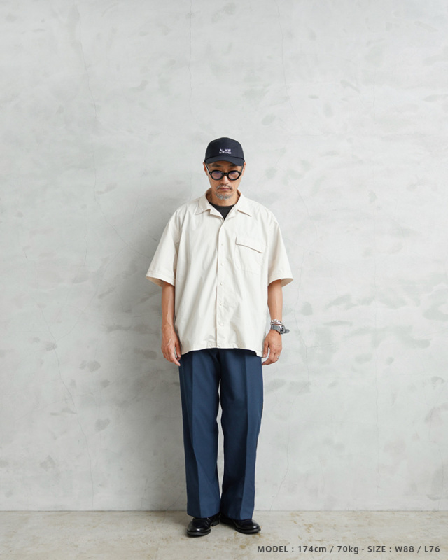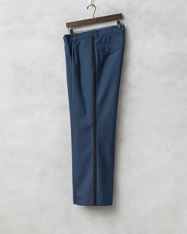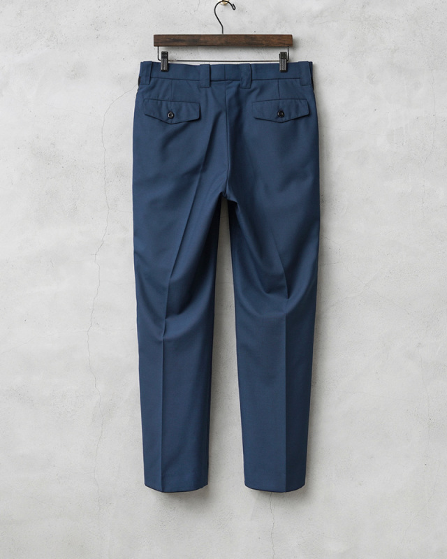 | 商品説明 | 実物 新品 デッドストック オランダ警察 サイドライン POLICE ワンタック トラウザーズのご紹介です。 オランダ警察のユニフォームとして使用されていたトラウザーズが入荷しました! 2014年以前にオランダ警察(Nationale Politie)で使用されていた、明るすぎないブルーにさり気なくブラックのサイドラインが入ったデザインのトラウザーズです。フロントはワンタック仕様です。タックを入れることで腰回りにゆとりを持たせることができ、動きやすさを確保してタックインなどのシンプルな着こなしにもアクセントになりおすすめです。 肌触りの良いウール、ポリエステルブレンドの生地を使用し、ウール特有のストレスを感じることはなく、フロントは使いやすいジッパーフライ仕様で、ゆったりと穿けるゆるやかなテーパードシルエットです。 両サイドのスラッシュポケットとバックポケットはボタン留めのフラップ付きで、それ以外に右ポケットのサイドラインの部分に約10cm程の玉縁ポケットが設けられており、深さが約40cmあり、警棒などを収納するためか、何かしらの装備を収納することを目的としたおもしろいポケットが付属しています。 サイドラインが入れられることで足長効果が期待できるほか、センタークリースが入ることで立体的なフォルムができ、クラシックなスラックスのような表情で上質な雰囲気を感じさせます。 レザーシューズやスニーカーにも愛称が良く使いやすい1本です。現在は製造されていないため、今後は入手が困難になっていくことが予想されるアイテムです。 |