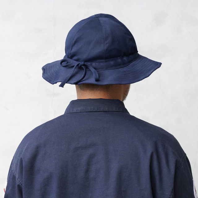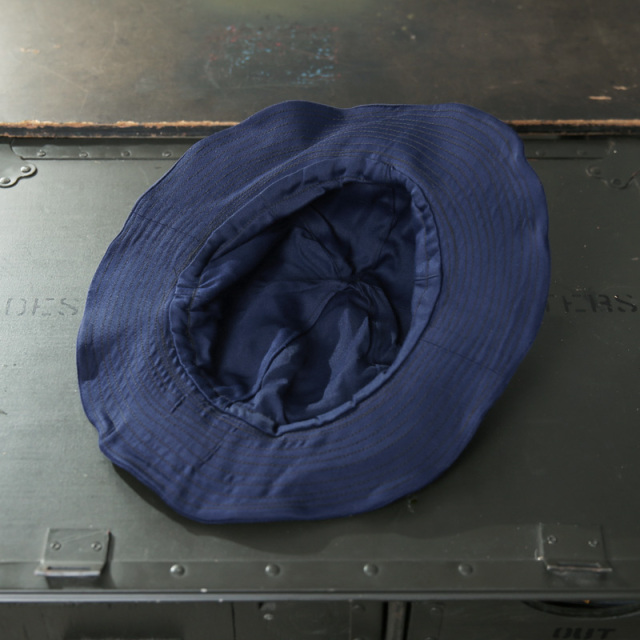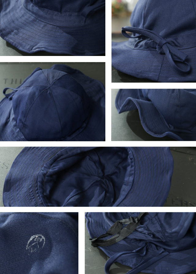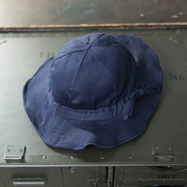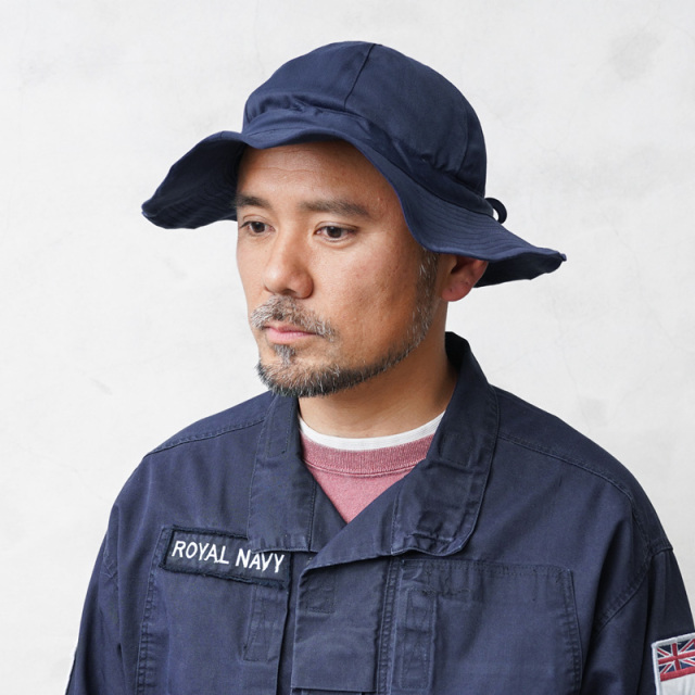 NAKAMURAさんがシレっとRNのコンバットジャッケット合わせてモデル着用されているので実物を手に取ってみても何となくそっちの雰囲気を感じてしまいますが、それほどまでの正統派のネイビーブルーですね。ツバの先のワイヤーや大きさのバランス感も良いです。Navy Colorのハットを探していたので、良い一品に巡り会えました。