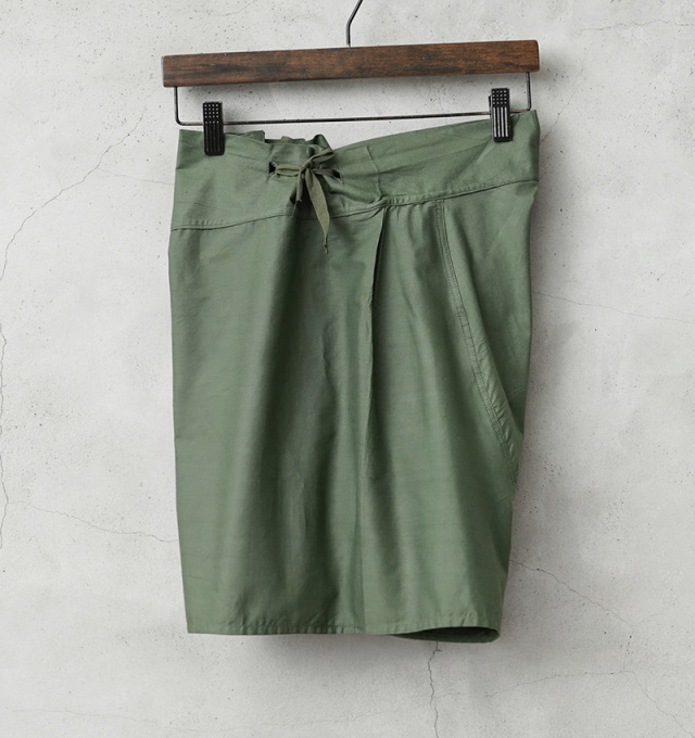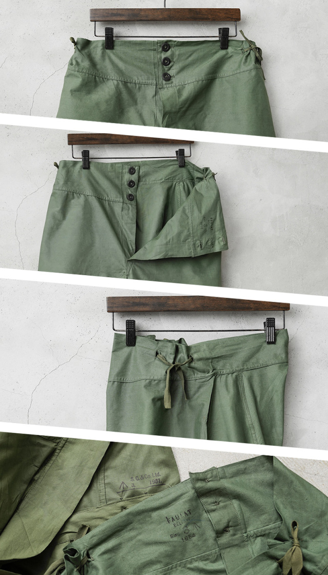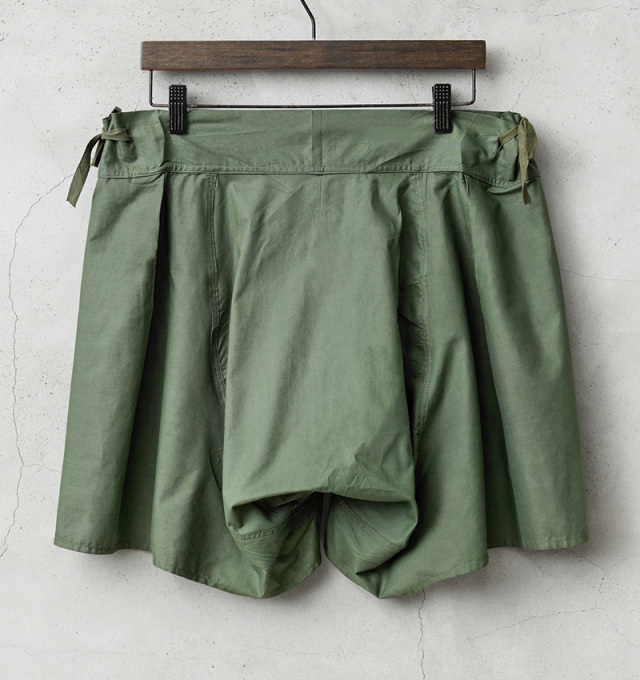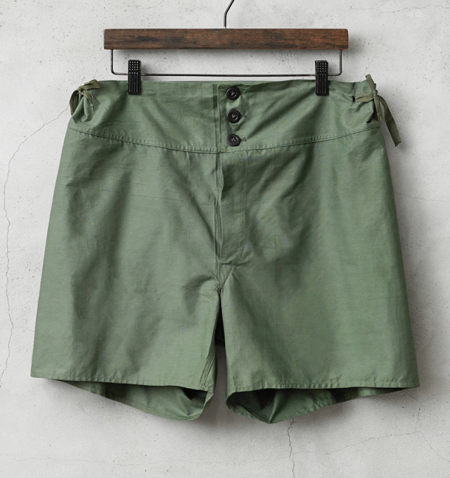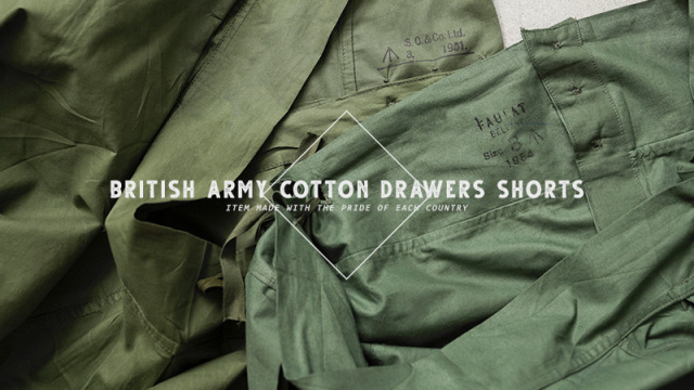 | 商品説明 | 実物 新品 デッドストック イギリス軍 50’s コットン DRAWERS ショーツのご紹介です。 イギリス軍で使用されていたDRAWERSショーツが未使用デッドストックで入荷しました。 第二次世界大戦時より採用されていたショーツで、1950年代をメインとしたアイテムが入荷しています。 軽量な平織りのコットンが使用された通気性の良い素材感です。フロントはウエスト部分のみに3つのボタンが付属しており、ボタンの素材はゴムや柔軟性のある樹脂製の素材など様々です。ショーツの両端には紐が付属していますので、こちらを絞ることでサイズを調節することができます。 イギリスの官有物である事を示す矢印形のマークである「ブロードアロー」が記された1950年代の物を手にすることができるのはなかなかできない経験だと思います。暑い時期にはショーツとしても活躍しますし、当時のようにアンダーウェアやパジャマなどでも涼しく過ごせる希少なアイテムです。 |