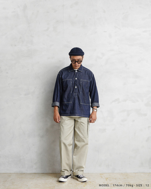 少し厚めの生地なので夏以外に向いているパンツです。このカラーの実物カーゴパンツはなかなかないのでスタイリングが楽しみです。
