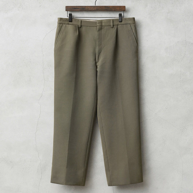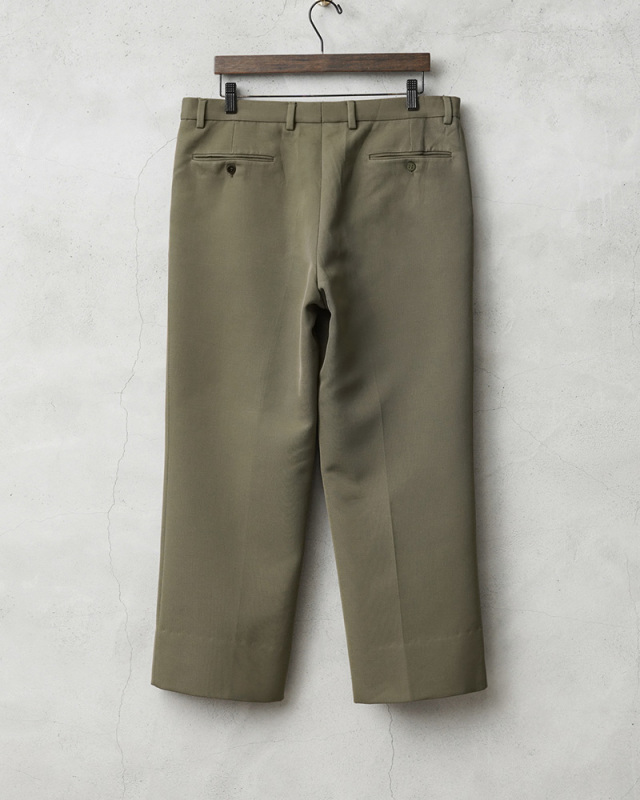 | 商品説明 | 実物 USED イタリア軍 E.I. PARADE トラウザーズのご紹介です。 1990年代にイタリア陸軍(ESERCITO ITALIANO)において採用されていた、上質なウールを使用したPARADEトラウザーズが入荷しました。パレードや祭事等の準礼服や常装として使用されていた制服になります。 再生ウールなどを使ってない新しい羊毛が使用された、バージンウール50%とポリエステル50%の混紡素材が使用されており、ウール特有のストレスを感じることはなく、肌触り良い上質なしっかりと目の詰まったサージ生地はスムーズな表面と滑らかな手触りが特徴です。 フロントは使いやすいジッパーフライ仕様で、程良くゆったりと穿けるゆるやかなテーパードシルエットの汎用性の高いワンタック仕様で、タックを入れることで腰回りにゆとりを持たせることができ、絶妙なシルエットに仕上がった非常に雰囲気のある1本です。 ウエスト右部分にさり気なくウォッチポケット(コインポケット)が備わっています。両サイドのスラッシュポケットと両玉縁のバックポケットはボタン留めのデザイン。 落ち着きのあるオリーブカラーで、やや厚手な素材感。イタリアらしいファッション性の高さと、現行の製品では決して味わう事のできない高級感溢れる雰囲気が魅力のトラウザーズです。 |