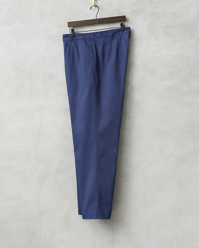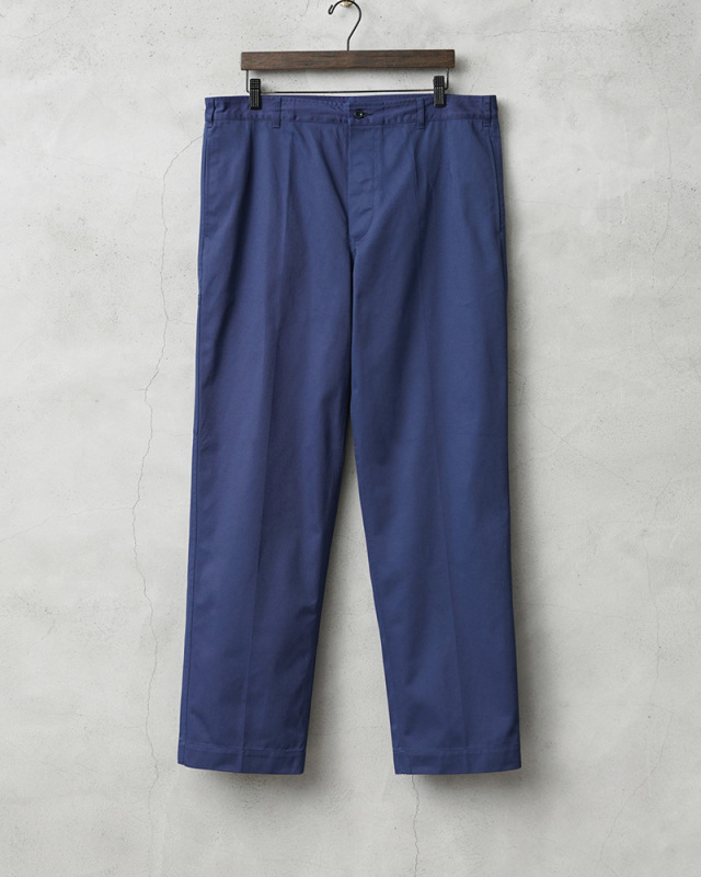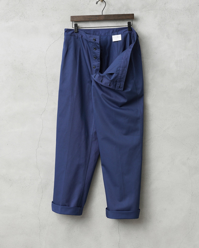 | 商品説明 | 実物 新品 デッドストック オランダ軍 ユーティリティ ワークパンツ NAVYのご紹介です。 オランダ海軍で1970年代後半より採用されているワークパンツが入荷しました。 2000年代の個体が多く入荷しており、センスの良いブルー系のネイビーにコットンとポリエステルの混紡のT/Cツイル素材が使用され、様々な用途で使用されるワークパンツなので、コットン100%素材よりも速乾性に優れた耐久性の高い素材が用いられています。穿き込むことで風合いの良い色落ちや経年変化を味わっていただけます。 フロントはボタンフライ仕様で、両サイドにはポケットの上下をバータック(かんぬき)で補強されたスラッシュポケット、フロントとバックのウエスト周りは6箇所のダーツが施されることで立体感が出て、ゆったり穿けるシルエットに仕上げられています。バックポケットはボタン留めのフラップポケットが片側にデザインされたユーロミリタリーらしいアクセントにもなるバックスタイル。右太ももには縦長のツールポケットも備わっています。 緩やかにテーパードしたシルエットは綺麗なラインで穿けて上品な印象もあり、シンプルながらもディテールにこだわられたユーティリティワークパンツです。 |