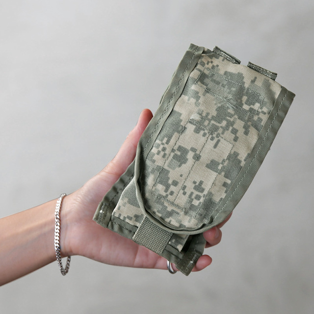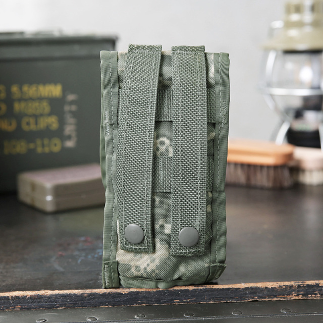 | 商品説明 | 実物 USED 米軍 MOLLE II M-4 ダブル マガジンポーチ ACUのご紹介です。 制式名称:MOLLE II M-4 DOUBLE MAG POUCH 米陸軍放出のM4 マガジン収納用のマグポーチです。 フラップがポーチ全体を覆っているようなデザインで、ベルクロで開閉も楽に行なえます。 また、背面にMOLLE対応のストラップが装備されており、ベルトやバックパックなどに簡単に取り付けることが可能になっています。 本来は5.56mm、M16またはM4マガジンが2本入る、片手にフィットするサイズ感の小型ポーチ。 充電コードやイヤホンを入れたり、普段の身の回りの小物の整理にぴったりのアイテムで、旅行やアウトドア時のプラスワンポーチとしてバッグに付けて置くのにもオススメです。 |