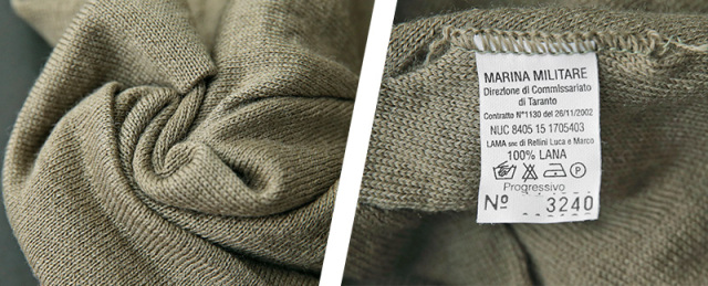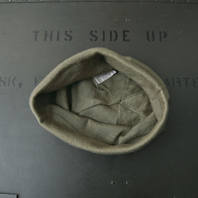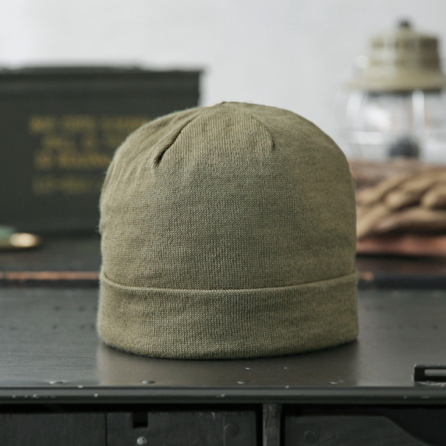 実物 新品 デッドストック イタリア軍 マリーン ウール ワッチキャップのご紹介です。 イタリア海軍の防寒性もありながら、軽くて柔らかなニットキャップです。 薄手のウールニット地が二重になった作りで、額にあたる部分には、汗止めの柔らかい芯が入って補強されています。 滑らかな光沢感と触り心地のウールで、薄手なので、真夏以外のほとんどの季節でコーディネートに取り入れやすいアイテムです。 絶妙なくすみカラーの薄いオリーブカラーが魅力的で、男女ともに重宝します。 |