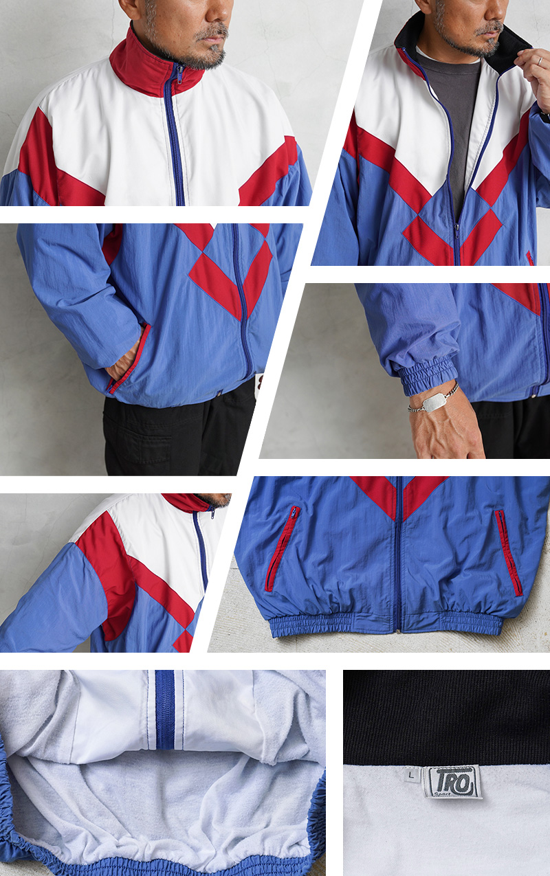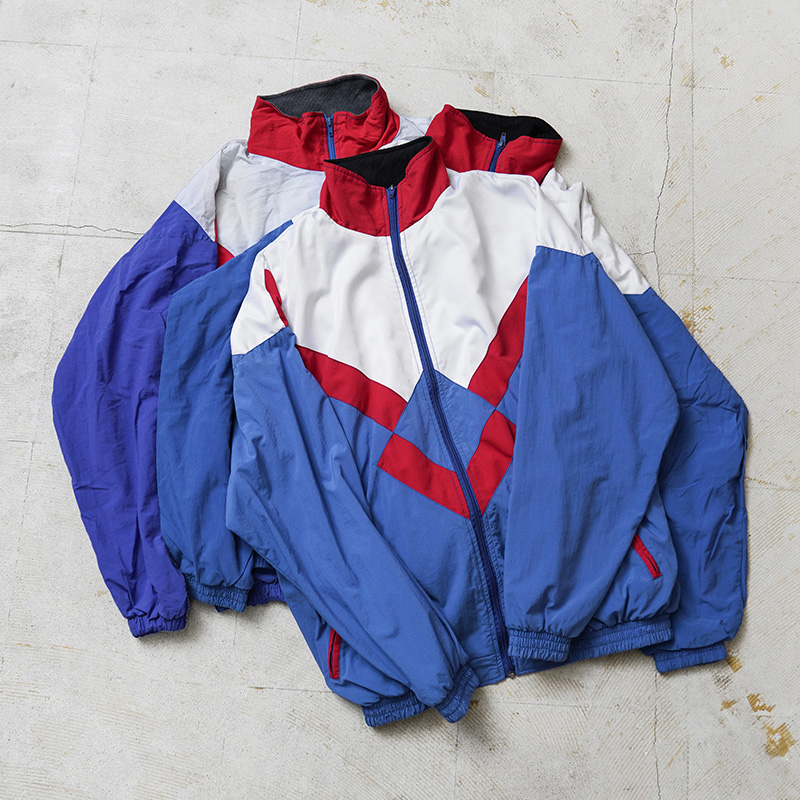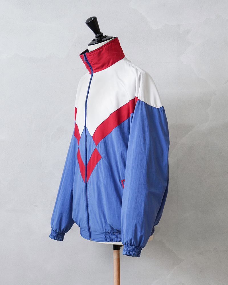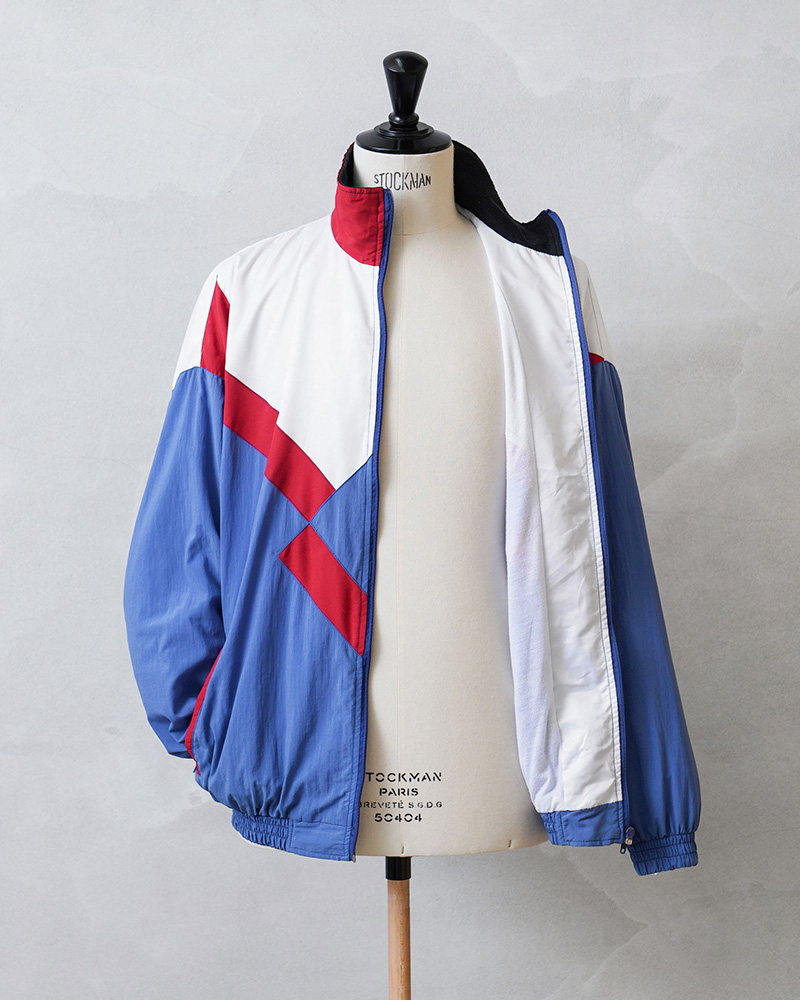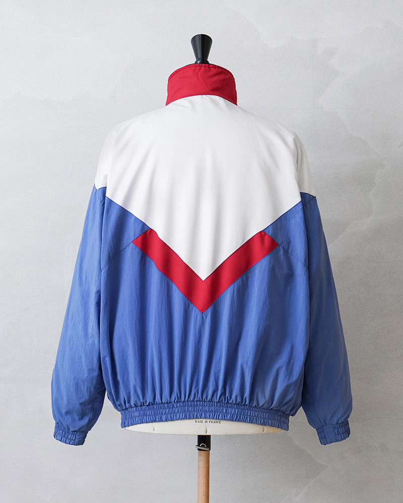 内側には通気性の良いメッシュ系のライニングが付属、両サイドにファスナー開閉のハンドウォーマーポケットが備わっています。状態は様々ですが、フランスらしいトリコロールカラーが用いられたドロップショルダーデザインで、90年代ファッションを彷彿とさせるポップなデザインと大胆なカラーリング。