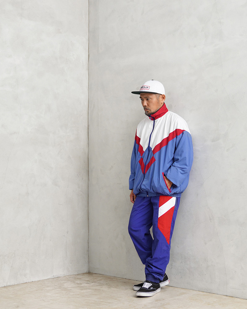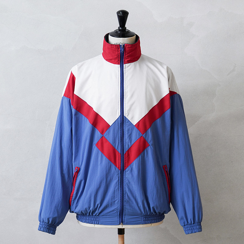 内側には通気性の良いメッシュ系のライニングが付属、両サイドにファスナー開閉のハンドウォーマーポケットが備わっています。状態は様々ですが、フランスらしいトリコロールカラーが用いられたアシンメトリーなデザインで、90年代ファッションを彷彿とさせるポップなデザインと大胆なカラーリング。