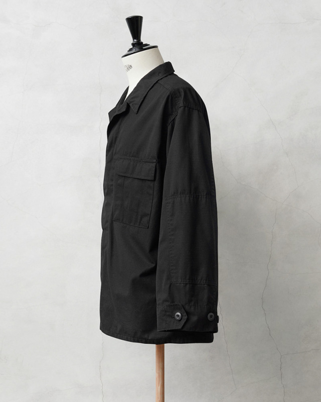 | 商品説明 | 実物 新品 デッドストック 米軍 U.S. COAST GUARD ODU オペレーション ジャケット DEEP BLACK染めのご紹介です。 制式名称:SHIRT, OPERATIONAL DRESS UNIFORM 実物米軍放出でU.S.COAST GUARD(米国沿岸警備隊)のオペレーションジャケットが入荷しました。 アメリカ軍の一部門でもある米国沿岸警備隊(U.S. COAST GUARD/USCG)で使用されているOPERATIONAL DRESS UNIFORM(オペレーショナル ドレス ユニフォーム)通称ODUと呼ばれるジャケットで、沿岸警備隊とはいえ、世界各国の海軍の能力と規模に匹敵する、最大かつ最も強力なのが米国沿岸警備隊です。 今回は人気で希少なこのアイテムを贅沢にDEEP BLACK染めを施しました!BLACKにする事で、BLACK357のような雰囲気を感じさせる1枚に仕上がっています!ナイロン素材は、真っ黒に染めることが難しい素材ながら、特殊な染色を行うことで、通常の製品染めに比べても深くしっかりと染まったDEEP BLACK仕様となっています。 このようなリップストップ素材で米軍のジャケットでしたら、4フラップポケットのいわゆるBDUジャケットを想像されるかと思いますが、ポケットは胸に2つで左胸ポケットにはペンホルダー付き、フラップはボタンではなくベルクロ留めでBDUジャケットよりもタクティカルな要素が少ないのでカジュアルに着ていただけます。 右胸にはアンカーマークのU.S. COAST GUARDのロゴが刺繍されている非常に特徴的な作りになっています。フロントの開閉はBDUジャケットと同じくボタンが露出しない比翼仕立てのボタン留めです。 袖口はボタンで調節可能な袖をロールアップすることも考慮されたデザインの幅広なカフスになっており、肘部分を広く覆うように同素材の補強がされている細部まで抜かりない仕上がりになっています。 ナイロン×コットンを使用したリップストップを使用しており、引き裂きに強く軽量ながら高強度という優れた素材のリップストップは耐久性が高く、また洗濯などで縮むこともなく、シワにもなりにくいタフな仕様で長く着ていただける1枚です。 本来のネイビーとはまた違った印象を与える、手に入りにくいジャケットです。 |