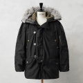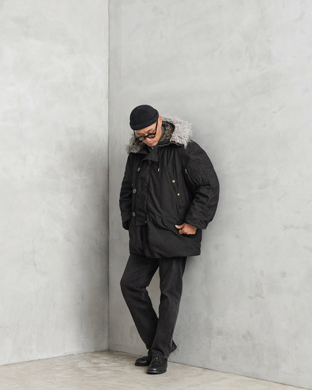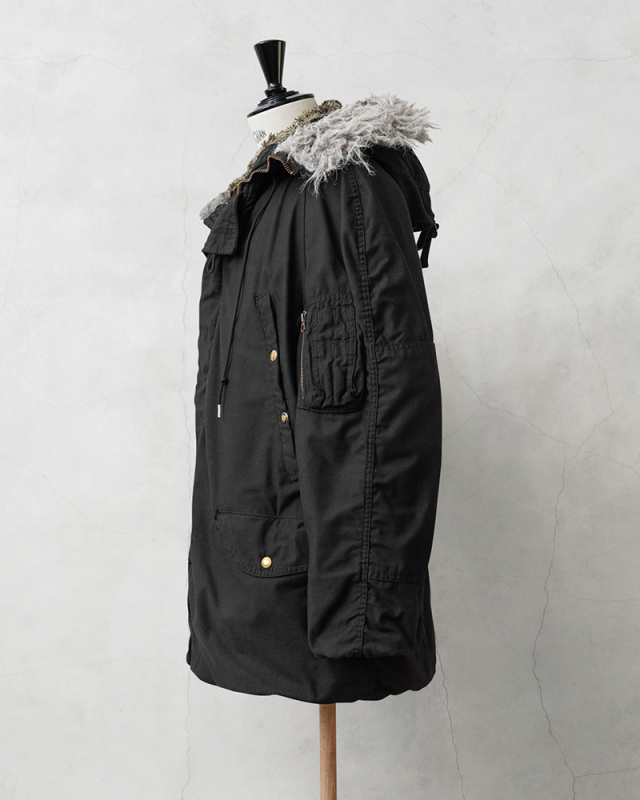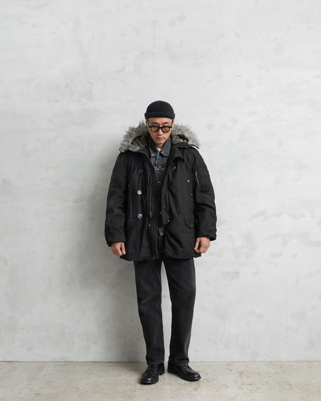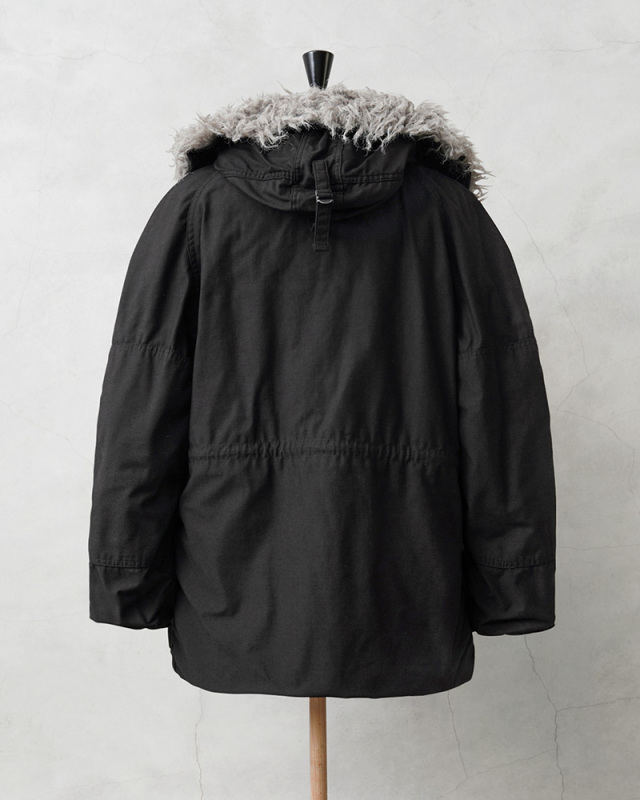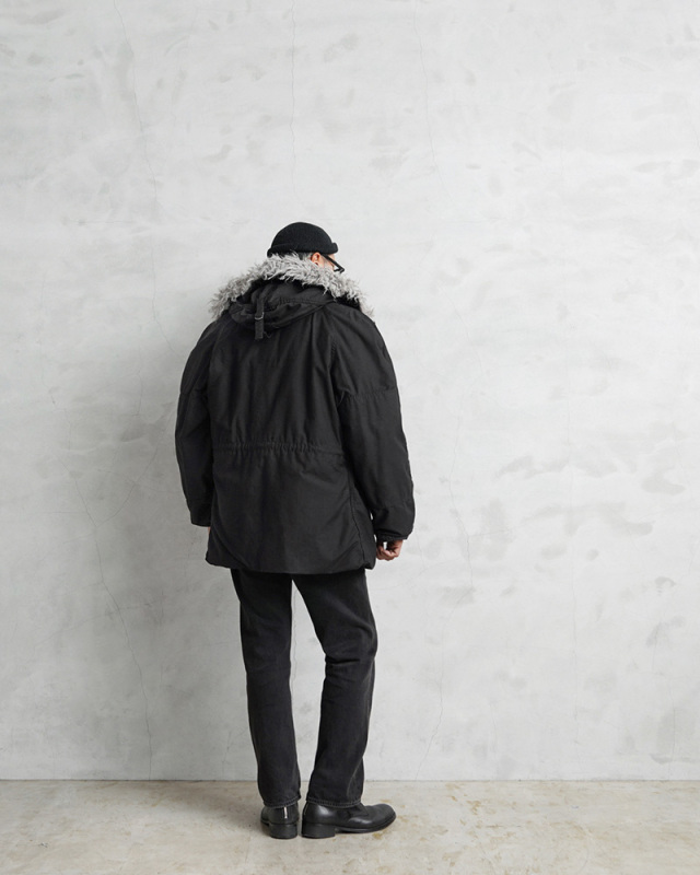 | 商品説明 | 希少 実物 USED 米軍 軍物 N-3Bフライトジャケット DEEP BLACK染め のご紹介です。 制式名称:PARKA,EXTREME,COLD WEATHER TYPE N-3B ここ数年現地買付でもほとんど出なくなり、高騰が激しい希少な米軍N-3Bジャケットを贅沢にDEEP BLACK染めを施しました!ナイロンを含む素材は、真っ黒に染めることが難しい素材ながら、特殊な染色を行うことで、通常の製品染めに比べても深くしっかりと染まったDEEP BLACK仕様となっています。ホワイトのファーはライトグレーの渋みのあるカラーに染まり上がっています。 ミリタリーヴィンテージウェアの代表格で、近年、ミリタリーの防寒性が高いとアウターと言えばLevel 7ですが、それともまた違う昔からの防寒アウターとして、ミリタリー界最高峰の優れものです。いつの時代にも古くならないこのデザインは不変的でまさに王道のアイテムだと思います。 通常アラスカンジャケットと言われ極寒地で着用出来るように作られています。フード部分のファーは吹雪でも前が見え耐えられる様に工夫されていますし、表地は風を通さないように、そして中綿は保温に良い素材が使われています。 手袋着用で手を入れることが多い為 ポケットは大きめで使いやすい前に縦に入れるポケットが2つ、その上に大き目のサイドポケットが2つ、前合わせは2重になり、前ファスナーに加えてボタン留めになっています。ボタンも手袋をしたままで留めやすいように大きめで、全て機能的に使いやすく工夫されています。 正直もうこのN-3Bをまとまった数見つけることが本当に困難です。持っていて損はないアイテムだと思いますので、この機会に着用にコレクション用に是非! |