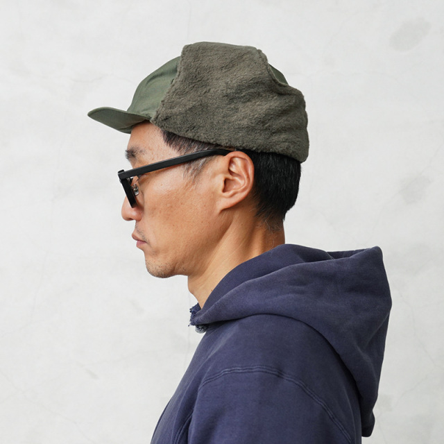 イヤーフラップを下げるとダーツが立体裁断みたいになっていて、コールドウェザーキャップ特有の圧迫感が少なく、耳を優しく包み込む感じが良い! |