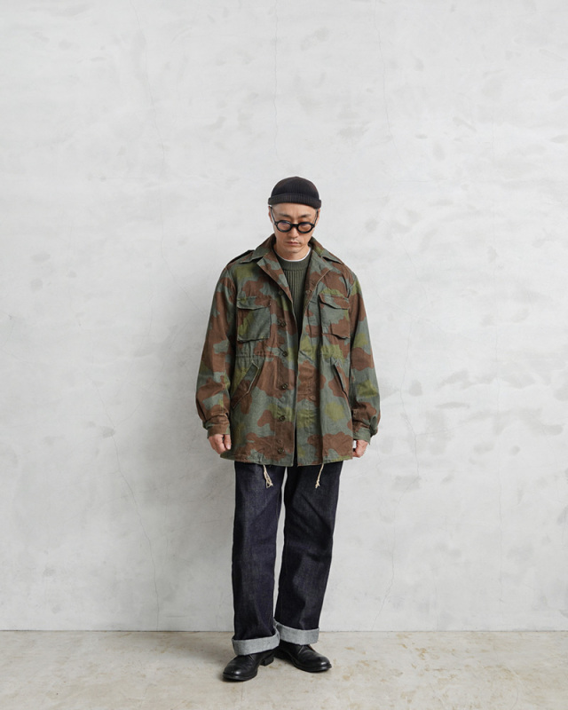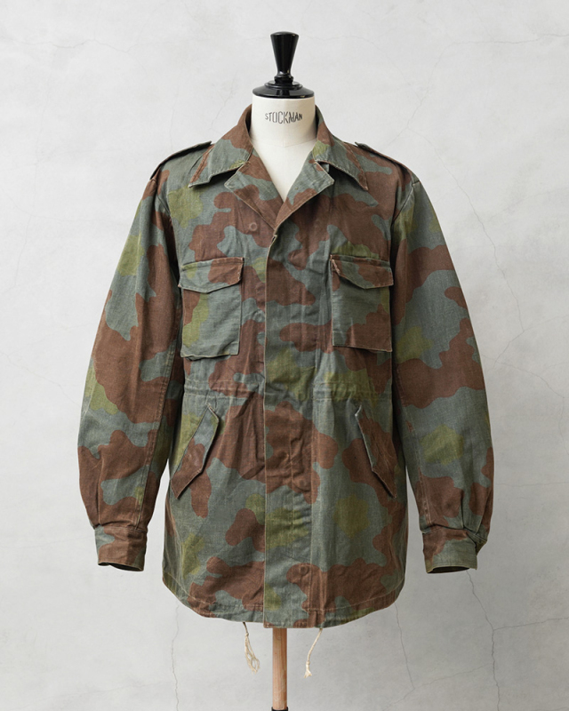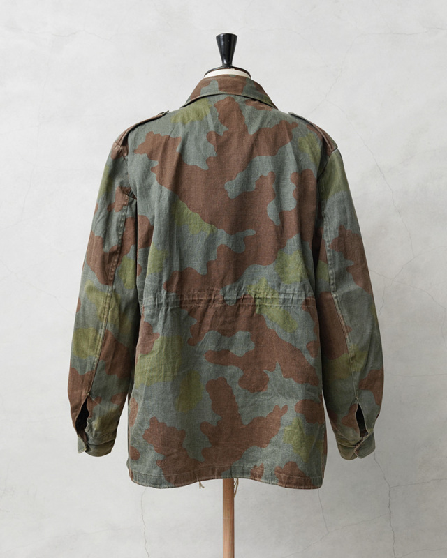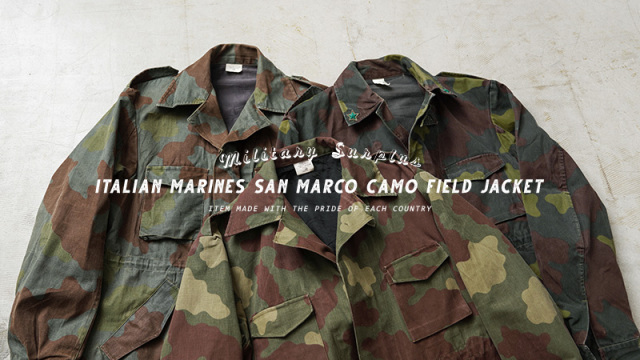 | 商品説明 | 実物 USED イタリア軍 フィールドジャケット サンマルコカモのご紹介です。 イタリア海軍所属の精鋭部隊サンマルコ海兵隊にて採用されていた迷彩パターン「サンマルコカモフラージュ」のフィールドジャケットが入荷しました。 1980年代後半から2000年代前半まで採用されていたフィールドジャケットで、イタリア海軍の水陸両用部隊の海兵隊が主に使用していました。ガッシリとした質感のヘヴィなコットンツイルが使用されたジャケットです。 前立てはボタン留めの比翼仕立て、フロントは4ポケットデザインで、胸ポケットにはマチが設けられています。ウエスト部分のポケットは斜めに配置された使い勝手の良いディテール。脇にはベンチレーション付きで、襟下にはチンストラップ付きなので寒い日には首元まで閉じて防寒性を高めます。 袖裏から肩部分には滑らかなコットン系の裏地が付けられています。襟にはイタリア軍のアイテムに見られる星柄の装飾が付属している場合があり、古くからイタリアのエンブレムなどに用いられてきた象徴的なデザインです。 着込むほどにより雰囲気の良くなるコットンツイルはヴィンテージのようなアタリや、フェードしていく経年変化も楽しみな素材感で、2000年初頭に生産終了している希少な1枚です。 |