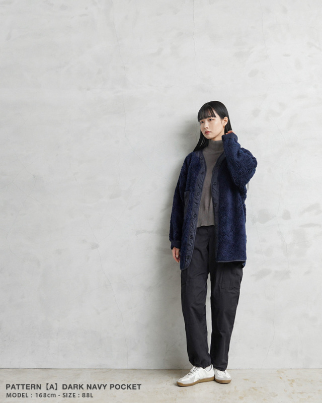 自分用に購入しましたが、奥さんの方が似合うのではと思い、着てみてもらったらとても似合っていたので奥さんの物になりました。シルエットも可愛い感じですし、女性の方に着てもらいたいですね。M-65のライナーぐらい認知度があがってくれればいいですね。カーゴパンツやジーンズとも相性良いですね。買って良かったです。