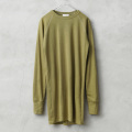 | 商品説明 | 実物 新品 デッドストック オランダ軍 ロングスリーブ ラグラン アンダーシャツのご紹介です。 オランダ軍で1990年~2000年代にかけて製造されていたベースレイヤーL/S Tシャツで、コットン95%とゴムのような弾性を持つエラストマー5%の混紡素材が使用されており、縦横への伸縮性に優れた素材感で、裏地には凹凸があり、肌に触れる面積が少なく通気性も良く快適にフィットする編地です。 首回りから斜めに縫い付けられたラグランスリーブ仕様なので肩や腕が動かしやすく作られています。カバーステッチで縫い目にストレスのない快適な着心地で縫製にもこだわりを感じさせます。 首元にはバインダーネックが採用されていますが、こちらも適度な伸縮性があり心地よい着用感が得られます。 マスタード系のカーキが印象的なカラーで、兵士はナイトウェアとしても使用しており、アンダーシャツとして優れた機能性を発揮するL/S Tシャツです。 |