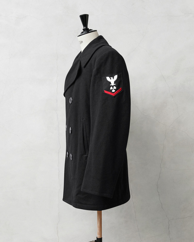 | 商品説明 | 実物 USED 米軍 U.S.NAVY 階級章付き ウール ピーコート BLACKのご紹介です。 制式名称:OVER COAT MAN’S ENLISTED(100% WOOL) クラシックなオーバーコートの世界的なアイコンであるピーコートの米軍実物品が入荷しました。こちらは左上腕に階級章の付属した数枚のみ入荷のアイテムです。 ミリタリールーツのピーコートは多くのブランドがサンプリングし、現代の衣類へ多大な影響を与えているファッションを語る上で外せないコートです。 米海軍(U.S.NAVY)で使用されていたピーコートは、下士官が着用するコートとして採用された高密度のウールメルトンが使用されたコートで、メルトンは密度が高く、気密性に優れているので保温性抜群。ダブルブレスト仕様のフロントボタンは、船のデッキでどの方向からの風に対しても逆合わせにして防風できるように左右のどちらでも閉じることができるデザインです。 襟を立てたり寝かせたりなどすることで、2通りの使い方ができるコンバーチブルカラーが採用されています。襟の下に隠れているボタンを使用することで首元まで閉じれる防寒性の高い仕様になっています。フロントにはU.S.NAVYの伝統的なアンカーボタンを使用、左右のハンドウォーマーポケットと、年代により仕様の異なるインナーポケットが備わっています。見頃裏には薄い中綿を入れることでより保温性を高める仕様で、バックにはセンターベントを入れることで、動きやすい仕様になっています。 見た目のカラーはブラックですが、屋外で見るとネイビーにも見えてくるカラーが多くの方に受け入れていただける色目で、1970年代以降にネイビーからブラックにカラーが変更されています。今回入荷の年代は1980年代後半から2000年代のアイテムです。 2018年、アメリカ海軍最高司令部は、この伝統的なピーコートを合成素材のブラック コールド ウェザー パーカに置き換えることを決定したことで、今後、米軍放出のピーコートは入手困難になり、価格も徐々に高騰していくことが予想されます。往年の名作である「U.S.NAVY ピーコート」をぜひ手に入れて下さい。 |
