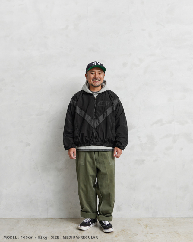 | 商品説明 | 実物 USED 米軍 U.S.ARMY IPFU フィットネスジャケット DEEP BLACK染めのご紹介です。 制式名称:JACKET,PHYSICAL FITNESS UNIFORM アメリカ陸軍がトレーニング時に着用していたフィットネスジャケットが入荷しました。IPFUとは「Improved Physical Fitness Uniform」の頭文字を取ったもので、アメリカ陸軍がフィジカルトレーニングに実際に使用するウェアのことをいいます。 現在は製造されていないこの希少なアイテムを贅沢にDEEP BLACK染めを施しました!BLACKにする事で、グレーとはまた違った雰囲気で存在感のある1枚に仕上がりました!ナイロン素材は、真っ黒に染めることが難しい素材ながら、特殊な染色を行うことで、通常の製品染めに比べても深くしっかりと染まったDEEP BLACK仕様となっています。リフレクターの機能は失うことなく、DEEP BLACKにさり気なくV字のラインが浮かび上がります。 表地に防風、防水処理が施されたナイロン100%を使用。脇下はジッパー開閉、背中にもVラインに沿ってベンチレーションが配置され熱がこもらない仕様になっています。裏地には総メッシュを採用し、肌アタリがよくドライで快適に着用できます。 フロントとバックに大胆に施されたV字のリフレクターデザインが夜間の着用時の視認性・安全性をアップ。左胸のARMYの刺繍もさりげないデザインのアクセントになっています。 ライトな着心地にラグランスリーブで動きやすい一着。トレンド感のあるゆったりとしたシルエットはトレーニングウェアとしてはもちろん、アメカジ、ストリートなど様々なコーディネイトに活躍してくれます。 |