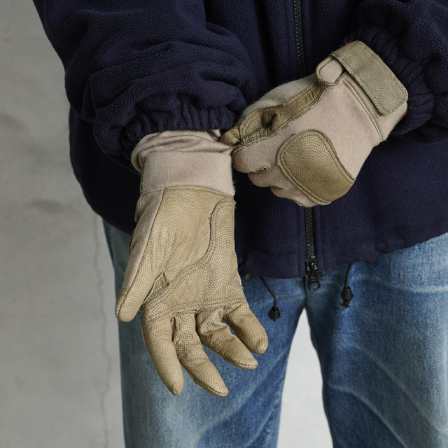 | 商品説明 | 実物 新品 デッドストック 米軍 Max Grip FROG コンバットグローブのご紹介です。 米軍より、イラクやアフガ二スタンなどで支給されていたグローブが登場しました。 素材には、撥水加工された高機能繊維「アラミド繊維」を採用。 アラミド繊維は、高強度・軽量、高耐久性、衝撃吸収性、非導電・非磁性、電波を透過するので電波の反射による悪影響を避けることができるなど、多くの優れた特徴をもち、タイヤの補強材、光ケーブルの補強材、プリント基板、防弾チョッキなどと共に、建設分野でも幅広く用いられています。 まさにあらゆるミッションをこなす軍用に相応しいハイテク繊維です。 滑り止めとしても機能する手の甲や手の平のはレザー、ベルクロで手首までしっかりとガード。履き口にはループが付いているのでカラビナ等に引っ掛けて携帯することも可能です。 タフな素材とミリタリー感のあるカラーリングは、アウトドアやバイクでの活躍はもちろん、シティウェアのアクセントとしてオススメのアイテムです。 |