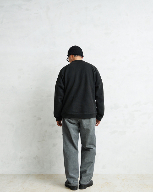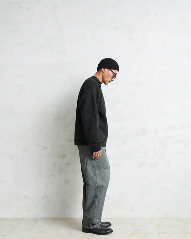 | 商品説明 | WAIPER.inc 実物 スイス軍 リメイク 1950年代 前期型 デニムワークパンツ ダブルニーのご紹介です。 スイス軍のデニム素材のユニフォームは30年代ごろから存在が確認されており、こちらのタイプは主に1950年代以降から採用されていたものになります。 この希少なデニム素材のワークパンツを使用し、WAIPER.incでリメイクを施しました!王道ワークブランドにも引けを取らない、膝部分が2枚仕立てになっている「ダブルニー」を追加!負荷のかかる部分はリベットで補強、フロントのパッチポケットにもリベットが追加されたペインターパンツ仕様のリメイクアイテムです! 年代によってボタンに違いがあり、こちらはアルミニウム製のボタンが採用された通称前期型となります。ブルーやグリーンがかった絶妙な色合いのグレーのデニム素材を使用。一般的なインディゴジーンズとは一味違った雰囲気のあるカラーが特徴です。 セットアップでユニフォームとして着用されるアイテムですが、使い勝手がよく堅牢なヘビーオンスのデニムは、脇にスケールポケットが備わっていることもあり、作業服や囚人服としても着用されていたと言われています。 フロントの両サイドにはベイカーパンツの様な大きなポケット、さらに脇部分には貫通式のポケットを配置。一枚での着用はもちろん、オーバーパンツとしても着用可能です。また一部の個体に打ち込まれたアルミニウム製のボタンのようなバッジは、IDの役割を果たしていたと思われます。 長い期間で採用されていたパンツですが、その中でも球数が少ないアルミニウムボタン仕様は希少価値の面でも魅力的な一本です。クラシカルなディテールに独特な色合い、ゆったりとした太もも周りから裾にかけてやや細くなるキレイなテーパードシルエットは、様々なコーデにマッチするアイテムです。 |