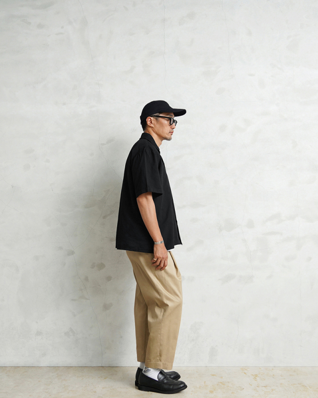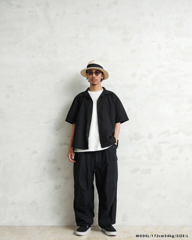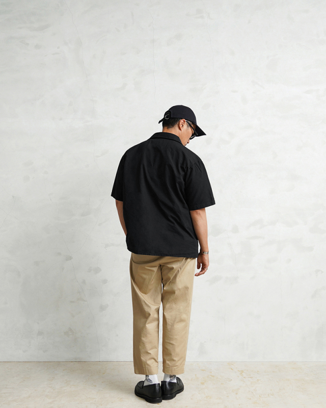 | 商品説明 | 実物 新品 米軍 GENERAL PURPOSE SMOCK ショートスリーブ シャツ DEEP BLACK染めのご紹介です。 GENERAL PURPOSE SMOCK(ジェネラル パーパス スモック)という名称の米軍施設の食品取扱者、検査員、事務員、医療などの様々な場面で使用する多目的なオープンカラーの半袖シャツです。 元々ホワイトでしたが贅沢にDEEP BLACK染めを施しました。コットン、ポリエステルの混紡素材は、真っ黒に染めることが難しい素材ながら、特殊な染色を行うことで、通常の製品染めに比べても深くしっかりと染まったDEEP BLACK仕様に仕上げています。DEEP BLACKになることでより使いやすい色目へと進化しています。 衣服を保護するために着用するスモックという目的で作られていますのでゆったりとしたサイズ感になっています。身幅は広めにデザインされたボックスシルエットで左胸にシンプルなポケットが付属しています。 30年以上にわたって米国国防総省と契約を結んでいるコントラクターが製造しており、サイズ表記の下に米国の連邦補給システムで調達される品目に対して割り当てられている管理番号のNSNも記載され、ミルスペックを満たす高品質の基準で作られたポリコットンのポプリン生地のシャツは通気性と着心地が良く、生地表面はしなやかでさらっと肌触りの良い素材感で丈夫で耐久性にも優れています。 羽織りやレイヤードなどバリエーション豊富な着こなしが可能で、ボタンを開けて着用したり、オーバーサイズシルエットを楽しめる、ベーシックで大人な雰囲気を漂わせるユーティリティシャツです。 |