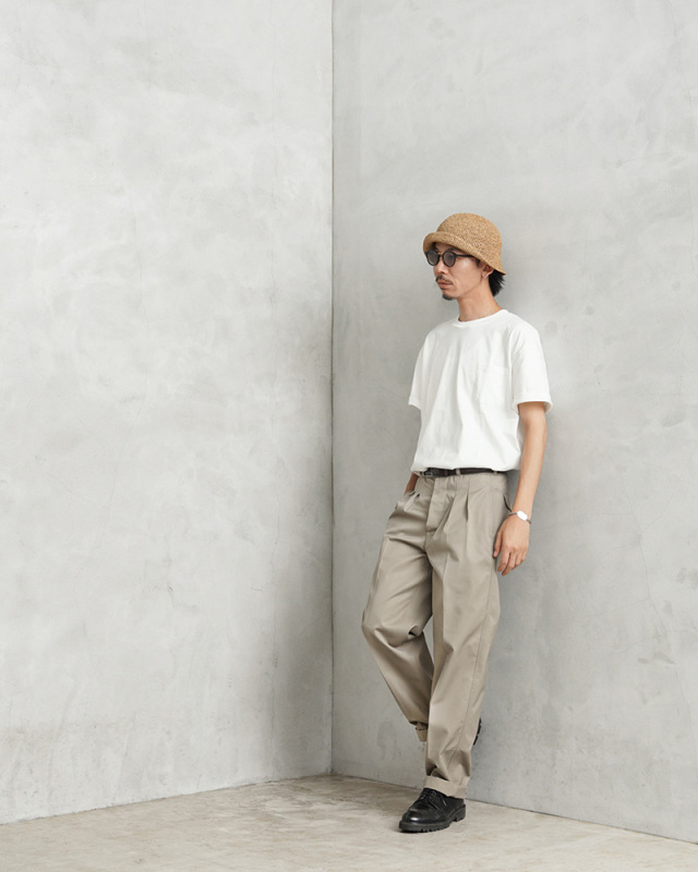 | 商品説明 | MADE IN GERMANY 新品 デッドストック T/Cツイル ツータック チノトラウザーズのご紹介です。 ドイツ製のツータック チノトラウザーズが入荷しました。1980~90年代頃のアイテムで、フランス軍の「M-52 ツータック チノトラウザー」のような雰囲気を感じさせるバックポケットやウエスト周りのデザインです。 フロントはボタンフライ仕様で両サイドには両玉縁のハンドポケット、バックポケットはボタン開閉のフラップポケットが付属しています。シルエットは腰回りにゆとりのあるキレイなテーパードシルエット。 さらっとした質感でハリもある丈夫で汚れにくいT/Cツイル生地が使用されています。T/Cツイルは速乾性に優れ、シワになりにくく、タフでイージーケアできる素材感でデイリーユースにも最適です。 ベーシックでスタイルを選ばずに合わせられるシンプルで完成されたデザインのトラウザーズです。 MADE IN GERMANY |