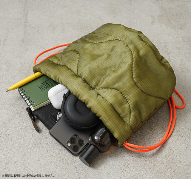 | 商品説明 | WAIPER.inc 実物 米軍 M-65 ライナー リメイク エフェクツバッグ LONG CORD 日本製のご紹介です。 貴重なデッドストックのM-65ライナーをリメイクしたWAIPER.incオリジナルのエフェクツバッグの、ロングコードタイプが登場。ドローコードを長くしたことにより、斜め掛けでき、ショルダーポーチとしても使用可能になりました。 米軍実物のエフェクツバッグをベースに、素材にオニオンキルティングが特徴的な実物 新品 米軍 M-65ライナーを解体して使用。 軽くて柔らかな質感のナイロンと、クッション性のある中綿がスマホなどの小物も優しく保護してくれます。 ドローコードで開閉する、巾着タイプ。キルティングライナー素材ならではのボリューミーなルックスに、開閉口に使われているリフレクター(反射素材)が織り込まれたパラシュートコードの鮮やかなカラーが映える他にはない逸品です。 WAIPER.incの中でもエフェクツバッグは再販のたびに即完売している人気のアイテム。素材を生かしたシンプルなデザインは、充電コードやイヤホンを入れたりコスメポーチとしてや普段の身の回りの小物の持ち運びに、バックインバックとしても活躍します。 実用性はもちろんですがコーディネートのアクセントとして、程よいミリタリー感を感じさせる男女ともに愛用必至のアイテムです。 MADE IN JAPAN |