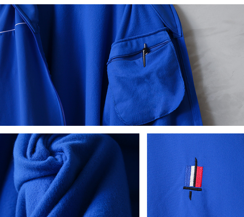 1990年代後半に採用されたトラックジャケットで、フランス軍でトレーニング時などに着用されていました。表地は滑らかで柔らかな質感のジャージ素材。裏地は肌触りの良い裏起毛素材で、寒い時期の着用でも冷たさを感じにくく、水泳など水から上がった後の吸水や保温にも適しています。
