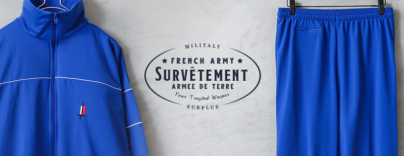 1990年代後半に採用されたトラックパンツで、フランス軍でトレーニング時などに着用されていました。表地は滑らかで柔らかな質感のジャージ素材。裏地は肌触りの良い裏起毛素材で、寒い時期の着用でも冷たさを感じにくく、水泳など水から上がった後の吸水や保温にも適しています。