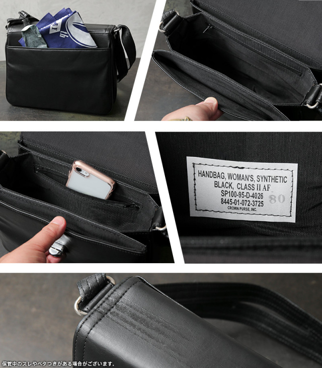 | 商品説明 | 実物 新品 デッドストック 米軍 レディース ショルダーバッグのご紹介です。 米空軍にて、女性兵士向けに支給されていたショルダーバッグが登場しました。 1980年代半ばから2000年初頭まで支給されており、礼装でのセレモニー時などの使用を目的としています。 クラシカルなBOXシルエットで、裏側にスライドポケット、内側は3つのコンパートメントがあり、いずれも仕切り部分に芯が入っているため型崩れせず丈夫な造り。無くしやすい小物の収納に便利なジッパーポケットも備えています。 片側のスナップボタンで取り外し可能なショルダーストラップは、長さ調節可能で、肩掛け、斜め掛けなど好みに合わせて楽しむことができます。 フラットで非常にシンプルな造りと、ブラックにシルバーのひねり金具の開閉口。 第二次世界大戦中のものとほぼ同じデザインで、40年代のレトロな雰囲気は、フォーマルはもちろん、古着などのカジュアルなコーディネートの外しアイテムとしても魅力的なアイテムです。 ※撮影に使用した小物は付属しません。 |