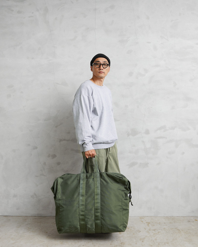 | 商品説明 | 実物 USED 米軍 USAF 1000D ナイロン フライヤーズ キットバッグのご紹介です。 制式名称:KIT BAG,FLYER’S 通称「アビエイターバッグ」とも呼ばれている米空軍のパイロットフライトバッグ。 シンプル構造で、汎用性の高さから、WW2時の米軍で使用された“A-3 Kit Bag”以来殆どその仕様、形が変わらず継承されています。 パイロットが必要とするフライト装備やパラシュートなど収納できるように設計されており、防水性のあるナイロン1000D素材。頑丈な真鍮製ファスナーとホック付きのカバーフラップで、ラフな取り扱いにも充分耐えることができます。全周をカバーするハンドルは、重量物を運ぶことができる丈夫さも兼ね備えています。 大容量で旅行やキャンプなどのアウトドア、遠征に便利なサイズ感。ポケットなど嵩張る部分がなく、大きく開く開閉口は単に大きな荷物を保管・移動させる際などにも役立ちます。ガレージやお店の什器としてもミリタリーらしい見栄えで一目置かれるアイテムです。 ※撮影に使用した小物は付属しません。 |