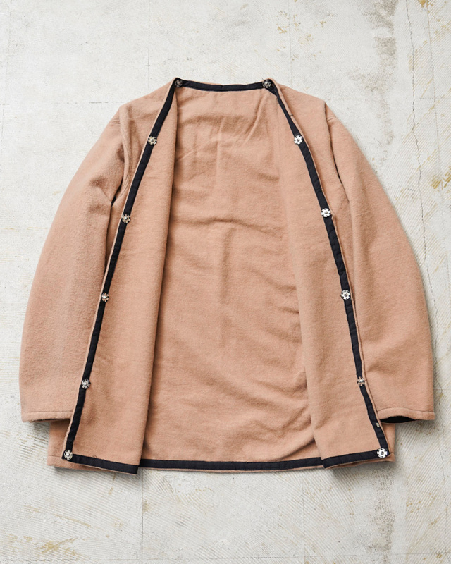 | 商品説明 | 実物 USED イタリア軍 ウール ライナー ジャケットのご紹介です。 イタリア軍からウール素材のライナージャケットが入荷しました。 フィールドジャケットなどのライナーとして使用されていたアイテムで、ウールを紡毛し圧力をかけてフェルト状に加工し起毛させたメルトン素材が使用されています。 ウールのチクチクとするイメージとは違い、ウール特有のドライな質感はありますが、直接肌に触れてもストレスを感じることはなく、天然繊維の滑らかな肌ざわりで起毛していますので保温性にも優れています。 ヨークと脇部分はコットン素材で切り替えられたユニークなデザイン。商品画像では内側にしている部分にはジャケットに取り付ける際のスナップボタンが付属しています。 フロントは留められない使用ですが、羽織りとして使用する場合はノーカラーのボタンレスカーディガンのような感覚で品よく着れるアイテムです。ジャケットの内側に着用すれば、ウール特有の保温性に包まれるライナーとしても活躍する汎用性の高いウールライナージャケットです。 |