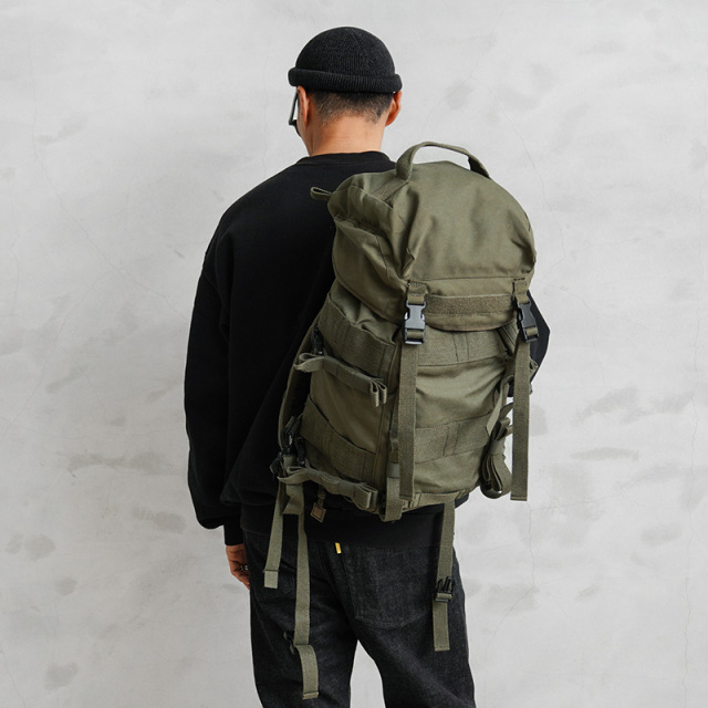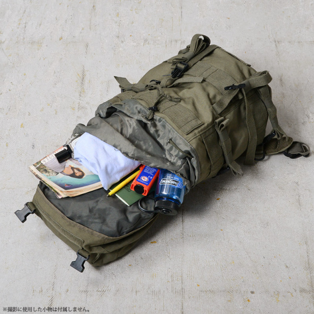 そこそこの使用感はありましたがダメージのない美品が届きました。初見は画像や映像の見た目よりも小さく感じましたが、実際に荷物を入れるとしっかり入ります。PCを入れるポケットやペットボトルを挟み込むポケットなどカジュアルリュックにある利便性はないですが、あちこちいじってると拡張性も高く、何より山岳国家の軍装らしく堅牢かつ軽くて使いやすい、近代ミリタリー品質ビシバシです。