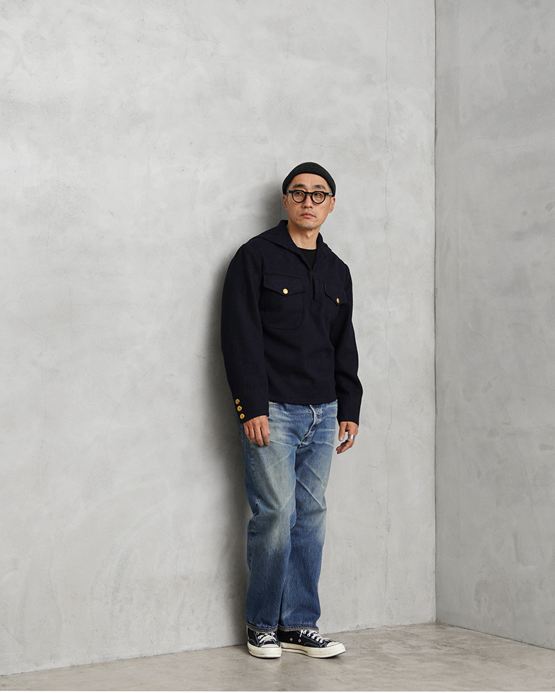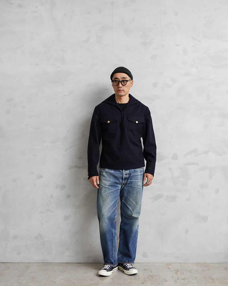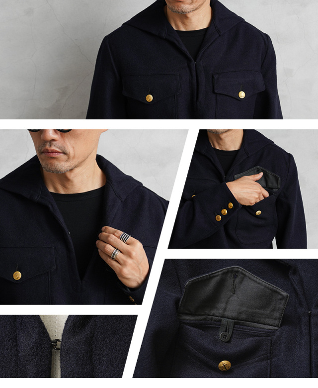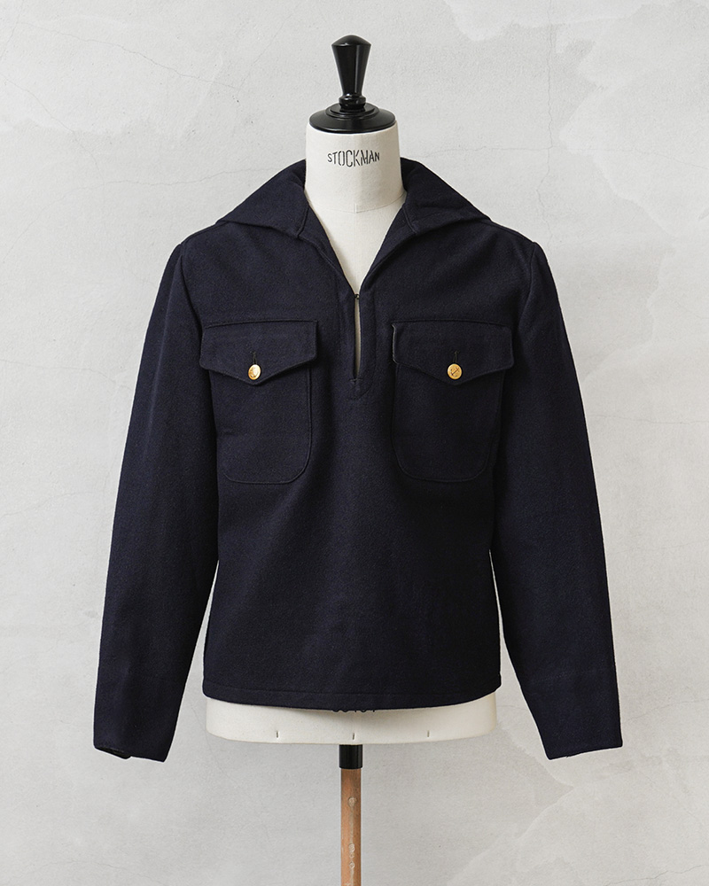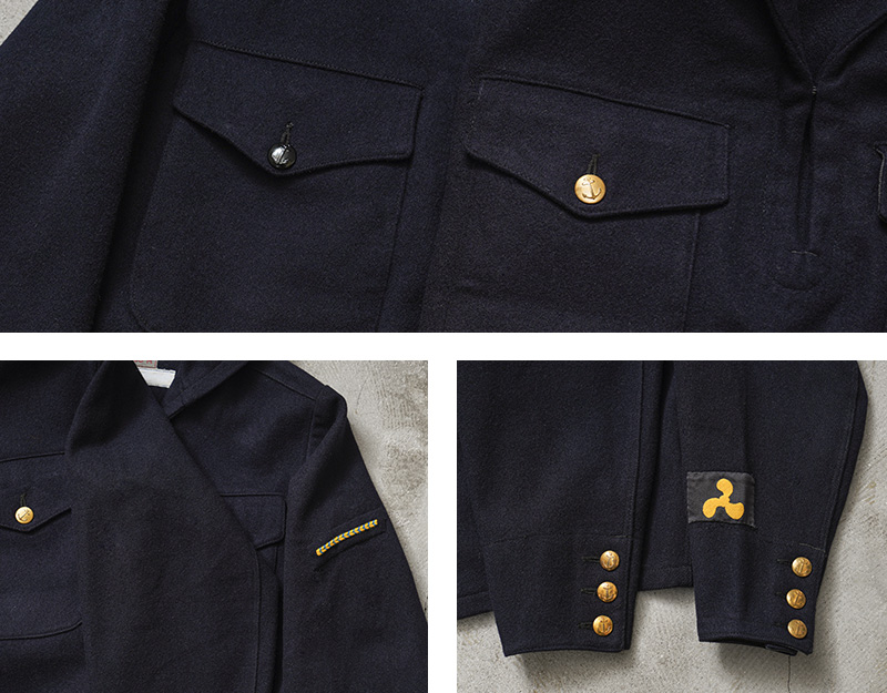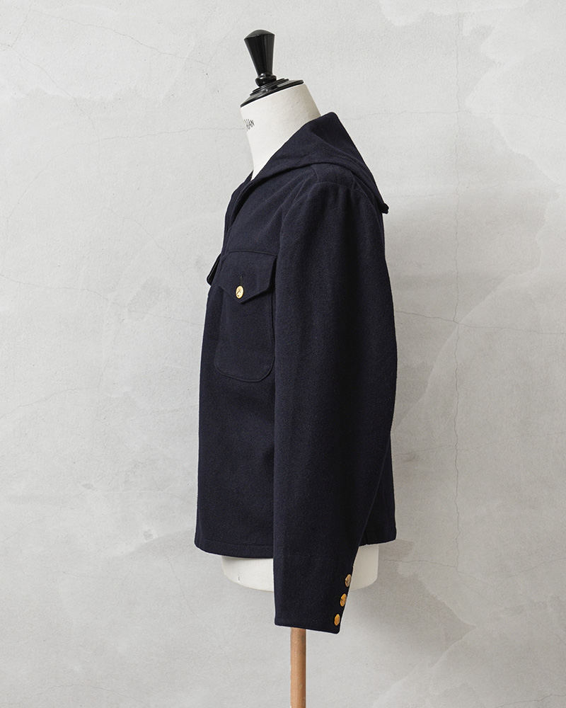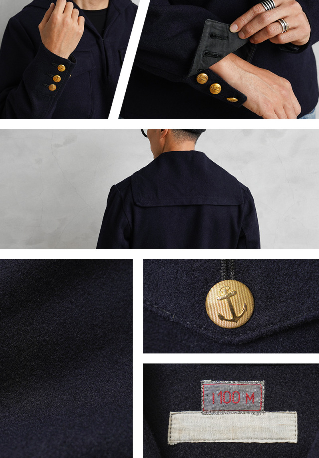| 商品説明 | 実物 USED スウェーデン海軍 ウール セーラー ジャケット フラップポケットのご紹介です。 60~70年代頃のスウェーデン海軍で着用された、軽量で保温性や撥水性に優れたウール メルトン生地のセーラージャケットが入荷しました。 公式行事などフォーマルな席用に仕立てられたもので、品がありエレガントな雰囲気があります。 セーラー服特有のプルオーバータイプでスモック風の造り。濃紺に、ポケットや袖口にあしらわれたゴールドのボタンが重厚感のあるアクセントになっています。また、セーラーにスーツジャケットのような3つボタンという珍しいカフスデザインです。 フロント首元部分には、着脱も楽に行えるフック付き。胸元のフラップポケットは、二層になっており手の込んだ造りになっています。 海軍の証でもあるアンカー(錨)が描かれたゴールドボタン、特徴的なセーラーカラーや温かみとキチンと感も演出される素材感。 ミリタリーらしい精密さと、気分やシーンに合わせてカジュアルにもドレッシーにも着こなせるデザインは、男女共におススメのサープラスアイテムです。 |
