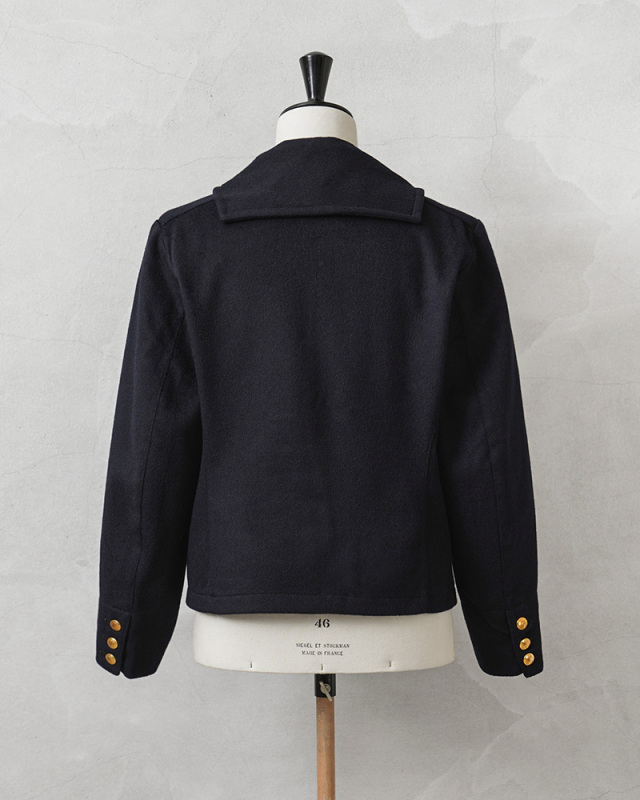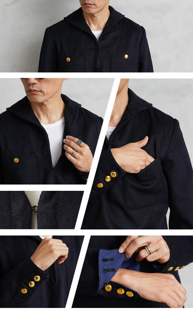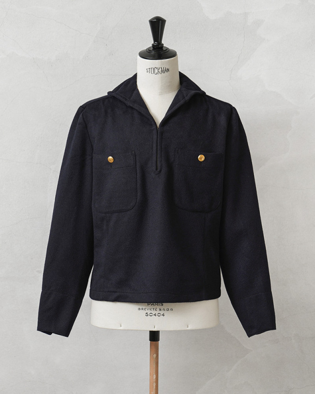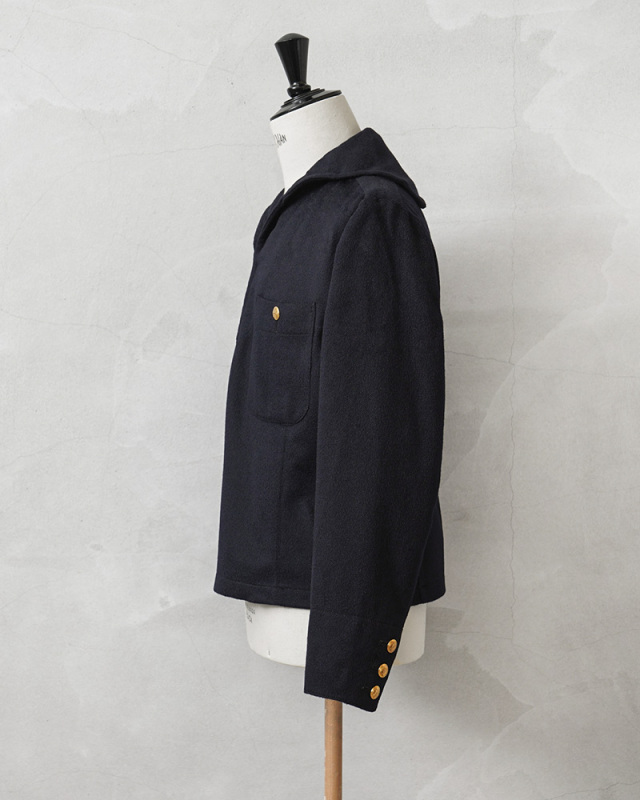 | 商品説明 | 実物 USED スウェーデン海軍 ウール セーラー ジャケット パッチポケットのご紹介です。 60~70年代頃のスウェーデン海軍で着用された、軽量で保温性や撥水性に優れたウール メルトン生地のセーラージャケットが入荷しました。 公式行事などフォーマルな席用に仕立てられたもので、品がありエレガントな雰囲気があります。 セーラー服特有のプルオーバータイプでスモック風の造り。濃紺に、ポケットや袖口にあしらわれたゴールドのボタンが重厚感のあるアクセントになっています。また、セーラーにスーツジャケットのような3つボタンという珍しいカフスデザインです。 フロント首元部分には、着脱も楽に行えるフック付き。胸元のパッチポケットはボタンで止めることができるのでスッキリとしたシルエットを維持できます。 海軍の証でもあるアンカー(錨)が描かれたゴールドボタン、特徴的なセーラーカラーや温かみとキチンと感も演出される素材感。 ミリタリーらしい精密さと、気分やシーンに合わせてカジュアルにもドレッシーにも着こなせるデザインは、男女共におススメのサープラスアイテムです。 |