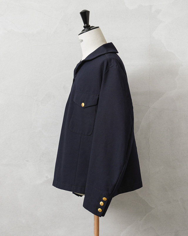 | 商品説明 | 実物 USED スウェーデン海軍 ギャバジン セーラー ジャケット フラップポケットのご紹介です。 60~70年代頃のスウェーデン海軍で着用された、保温性に優れ、適度なハリ感とほどよいしなやかさのあるウール混ギャバジン生地のセーラージャケットが入荷しました。 公式行事などフォーマルな席用に仕立てられたもので、品がありエレガントな雰囲気があります。 セーラー服特有のプルオーバータイプでスモック風の造り。濃紺に、ポケットや袖口にあしらわれたゴールドのボタンが重厚感のあるアクセントになっています。また、セーラーにスーツジャケットのような3つボタンという珍しいカフスデザインです。 フロント首元部分には、着脱も楽に行えるフック(またはボタン)付き。胸元のフラップポケットは、二層になっており手の込んだ造りになっています。 海軍の証でもあるアンカー(錨)が描かれたゴールドボタン、上品な光沢感でキチンと感も演出される素材感。一般的なセーラーカラーと異なり襟が小さく、後ろの垂れがない独特なスタイルが特別な存在感を放ちます。 ミリタリーらしい精密さと、気分やシーンに合わせてカジュアルにもドレッシーにも着こなせるデザインは、男女共におススメのサープラスアイテムです。 |