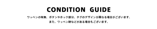 | 商品状態 | 軍放出のUSED ※こちらの商品はUSED品です。製造された年代などによってボタンやホック部分、タグのデザインが異なる場合がございます。また、ワッペン跡などがある場合がございます。商品の状態についてご指定いただくことは出来ませんので予めご了承ください。 |