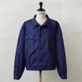 イタリア軍からの実物放出で、ブルーに近いネイビーが鮮やかなワークジャケットがデッドストックで入荷しました。 素材にはワークウエアらしいタフなコットンツイル生地を使用。程よい厚みでしっかりとした生地感は、長く着用していくことで柔らかくなり体にフィットするような心地よさが増し、経年変化によってうまれる独特な風合いもお楽しみいただけます。 フロントはボタン開閉、胸元に配置された2つのフラップ付きポケットに、起毛した肌触りのよい裏地などワークウェアの頑丈さとミリタリーウェアの実用性が融合されています。 シンプルなデザインに目をひく鮮やかなネイビーブルーのカラーは、イタリアらしい上品さを感じさせつつ、デニムやチノパンと合わせたカジュアルスタイルなどとも相性のよいアイテムです。 |