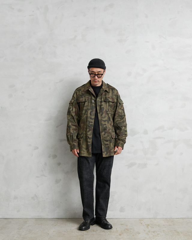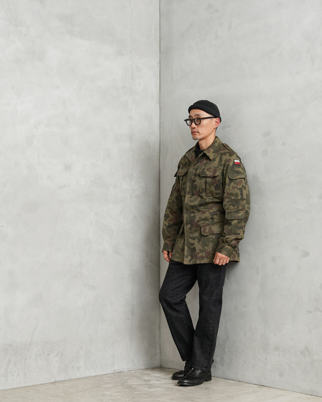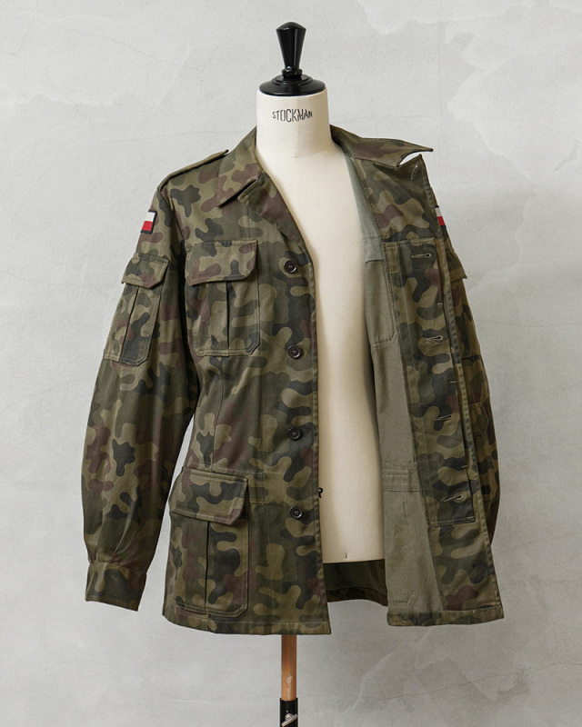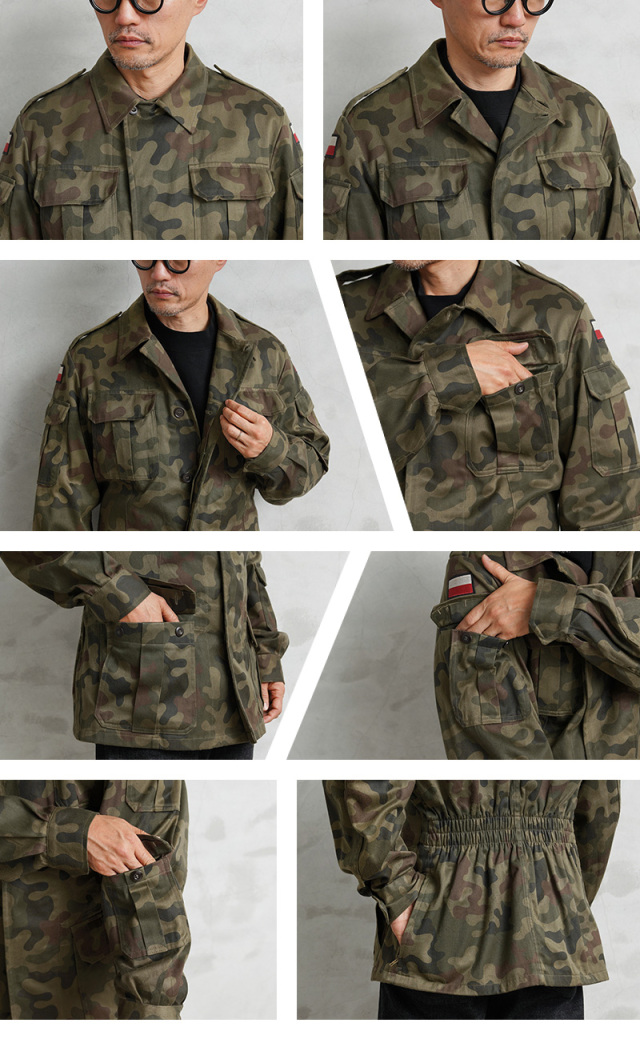 | 商品説明 | 実物 USED ポーランド軍 Wz93 Pantera Camo ノンリップ フィールド ジャケットのご紹介です。 ポーランド軍からWz93 Pantera(パンテラ)カモが使用されたフィールドジャケットが入荷しました。 1980年代から1993年頃まで採用されたPUMAカモの後継として誕生したヒョウ属を意味するWz93 Pantera(パンテラ)カモは、1993年にポーランド軍のほぼ全ての部隊、および国境警備隊の標準的なカモフラージュに採用された、ポーランド軍のウッドランドカモと言えるカモパターンです。 コットンをメインに使用したコットンポリ素材が使用されたフィールドジャケットで、コットンサテンのような風合いの良い生地が使用されています。 比翼仕立てのフロントはボタンで開閉、胸とウエスト付近にはベルクロ開閉のフラップポケットが4つ、袖の左右にも2つのユーティリティポケットが付属、左袖口付近にもフラップポケット付きで、背面の裾付近にはサイドにブラスジッパーが付属したゲームポケットが付属、背中心で分割されていますので左右からそれぞれアクセスできる個性的なデザインです。ジッパー開閉のゲームポケット以外は全て外側にマチの付いた立体的な仕様のポケットが採用されています。 ジャケットの内側の背面部分が生地を二重に使用していますので寒い季節にも活躍する仕様で、ウエスト部分のゴムシャーリングがフィット感を高めます。脇下にはベンチレーションとして機能するホールが付属しています。 丸みのある特徴的なカモ柄が非常に珍しく、放出量も少ないフィールドジャケットです。 |