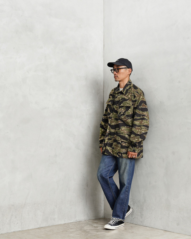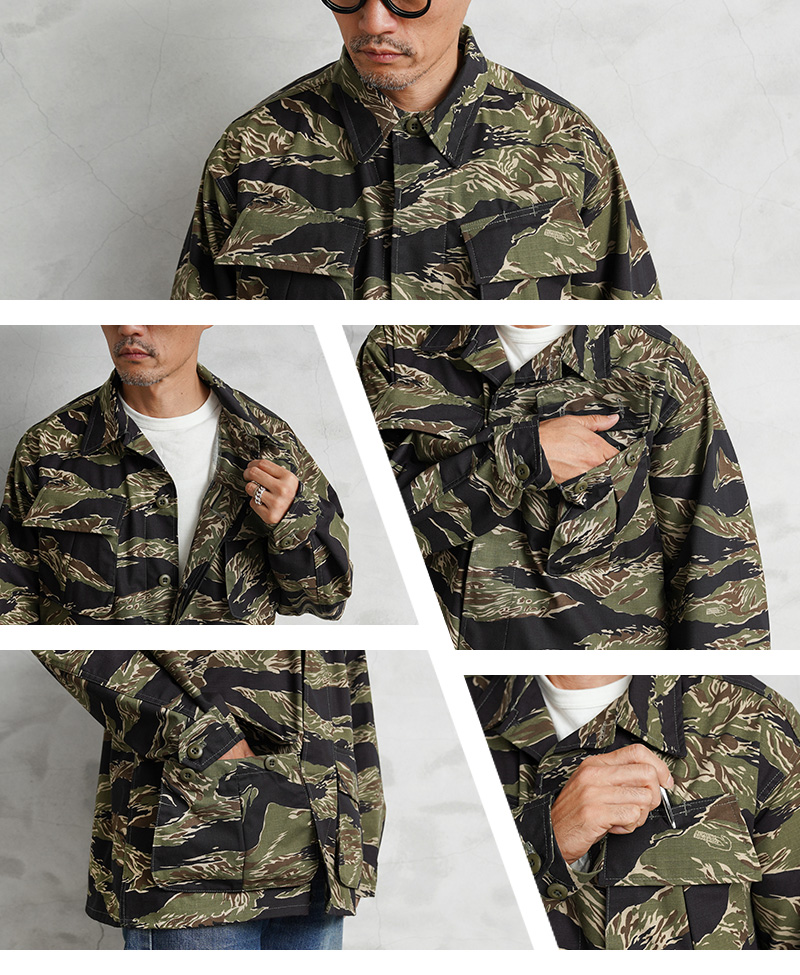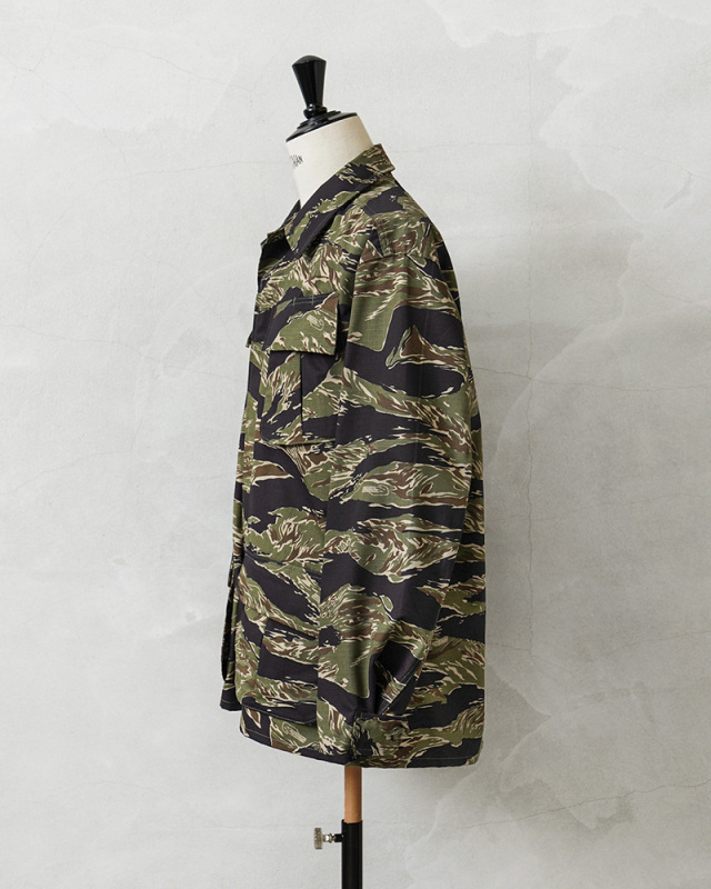 | 商品名 | リジェクト 訳あり品 MADE IN USA 新品 デッドストック 米軍 MCGUIRE ARMY NAVY社製 ジャングル ファティーグ ジャケット タイガーストライプ PATTERN【A】 |